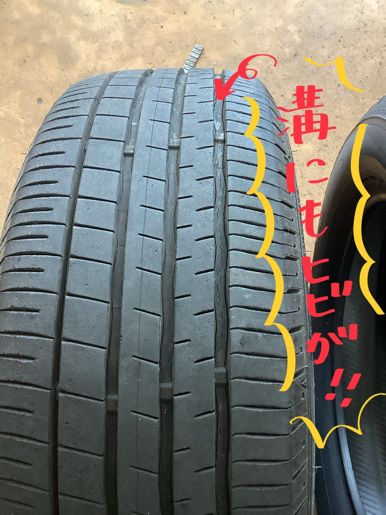タイヤにヒビがあるとのことで