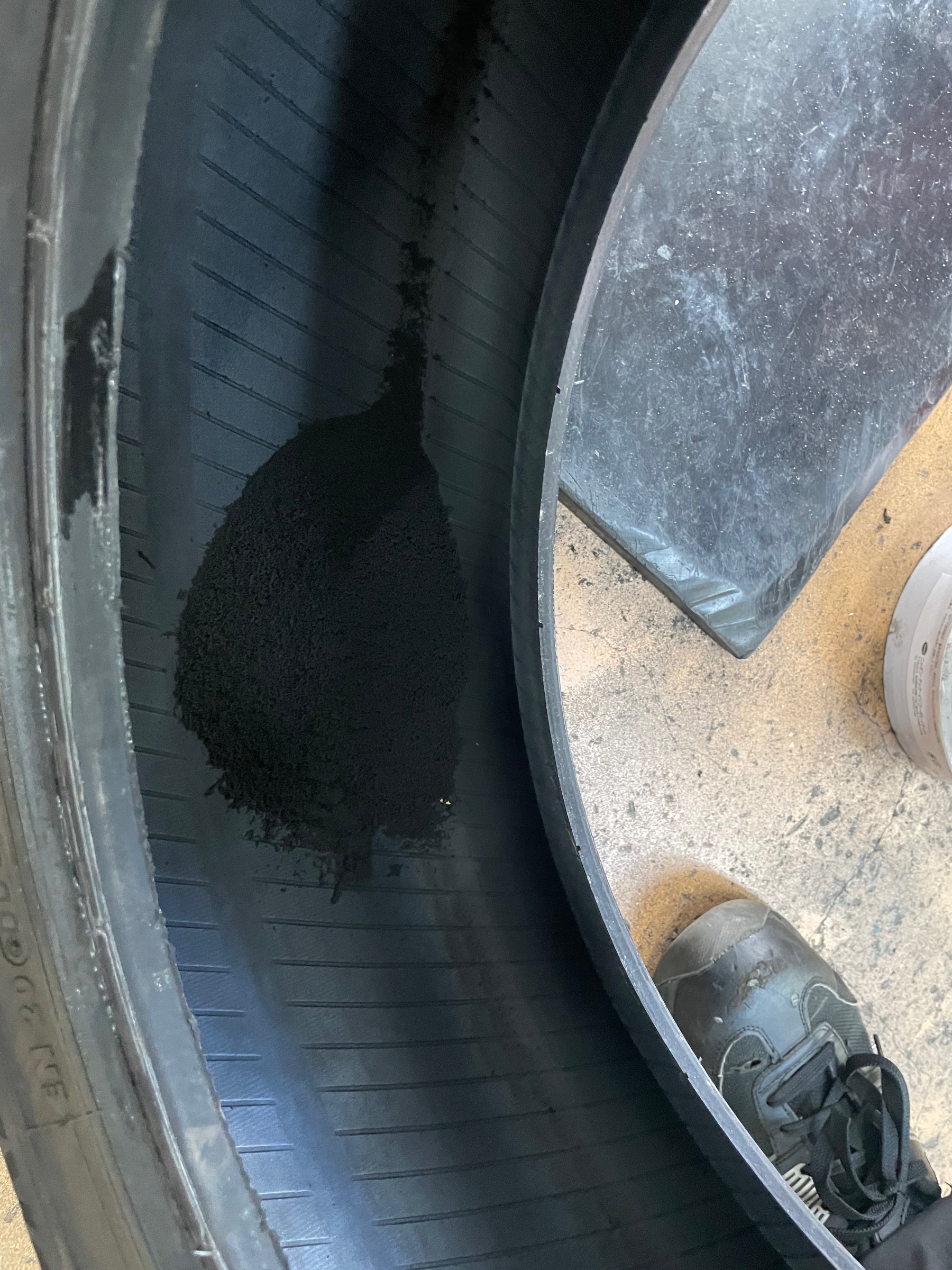中が傷ついてタイヤが削れてしまっている為、パンク修理はできません...。