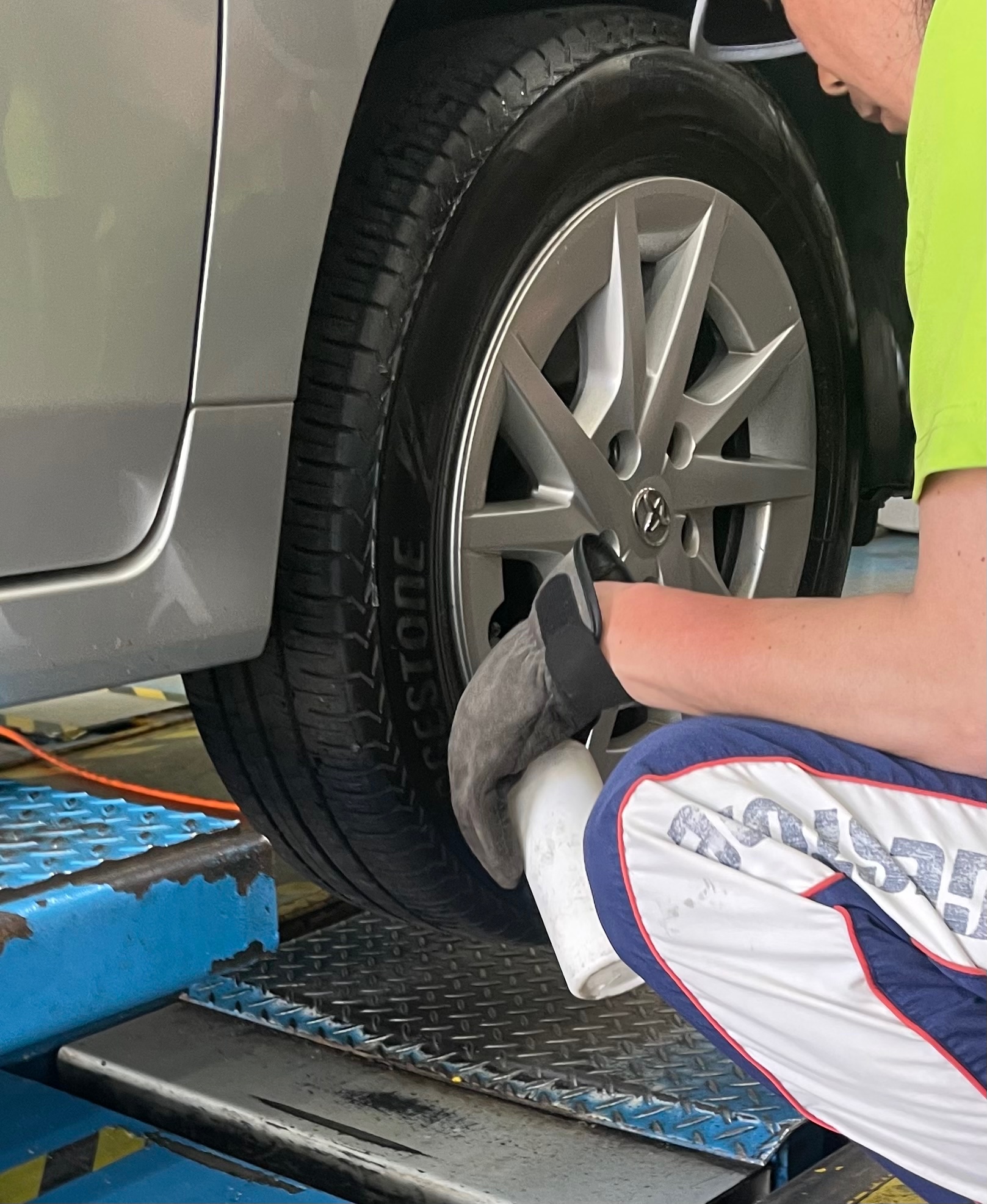 タイヤを組んでいる間に他のタイヤの空気圧チェックとタイヤワックスを塗布します♪