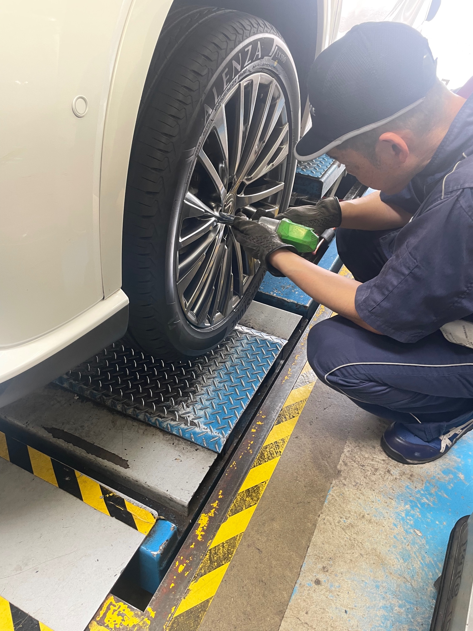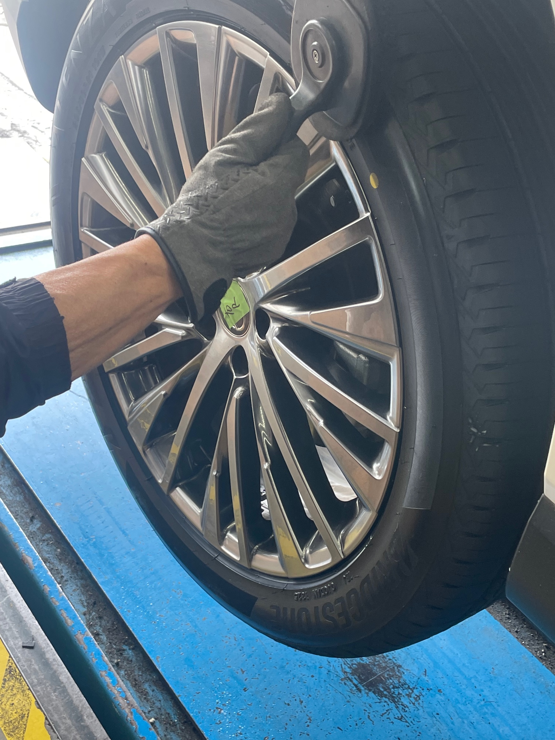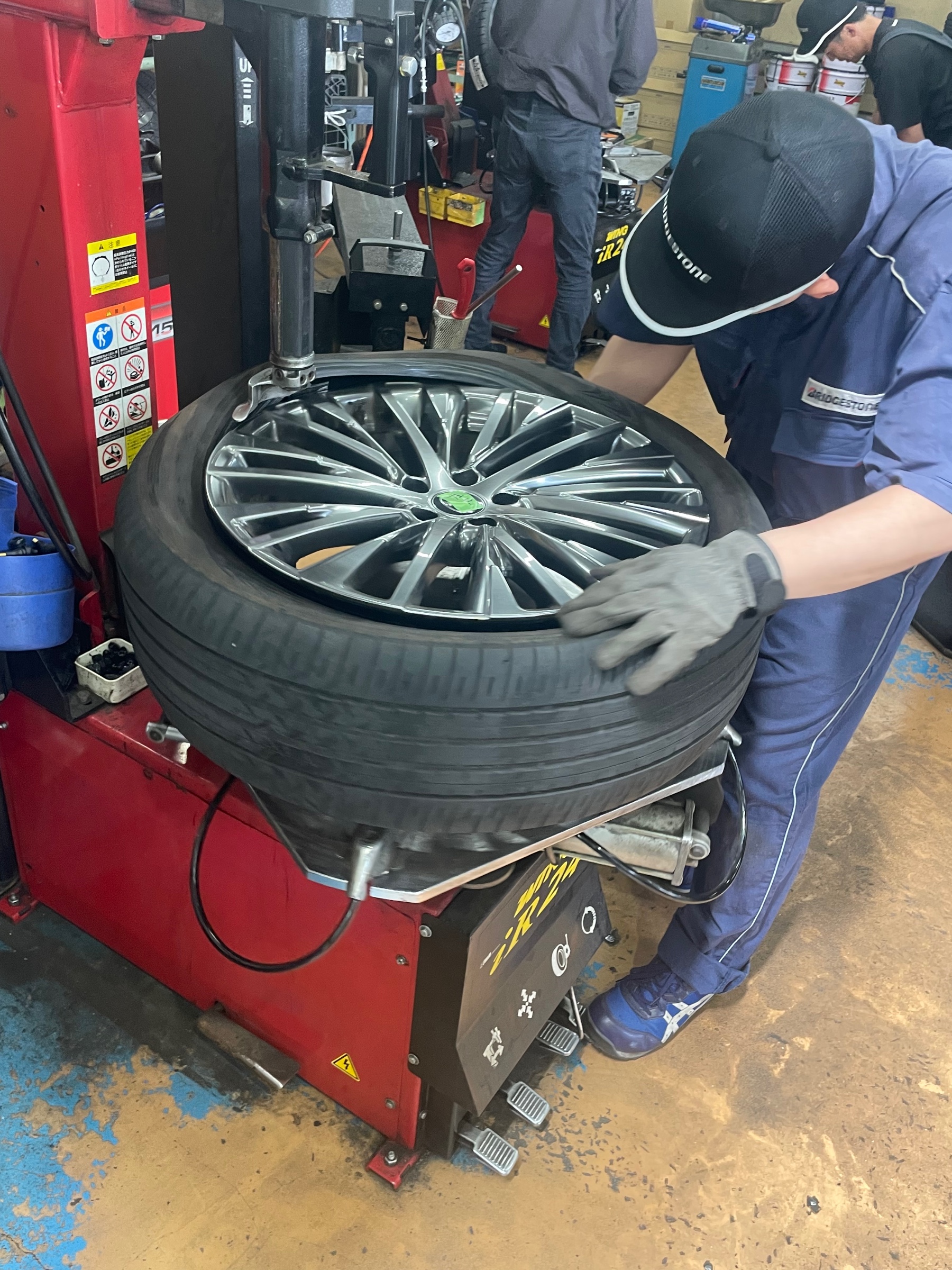 タイヤが21インチと大きいのでお待たせ時間短縮の為スタッフ総出で作業致します(`・ω・´)ゞ