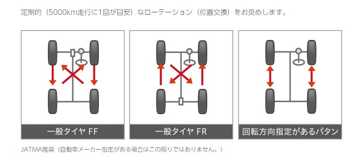 タイヤは同じ位置に長く装着していると、一部分だけが摩耗してしまうことがあります。