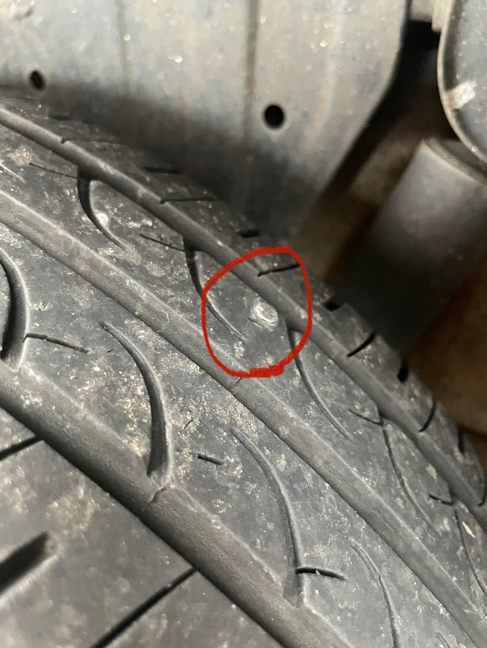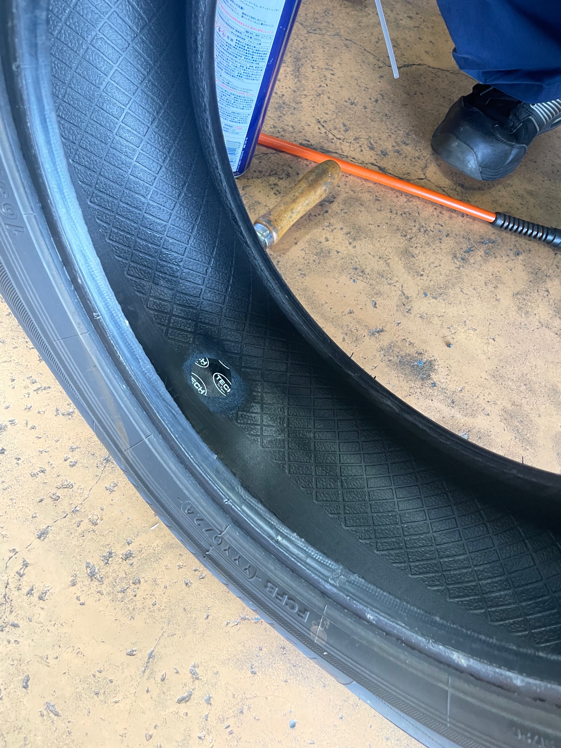 『タイヤに釘が刺さっている!』と、お客様ご来店です!
