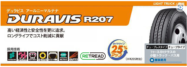 ブリヂストンのDURAVIS(デュラビス)R207で交換させて頂きました!