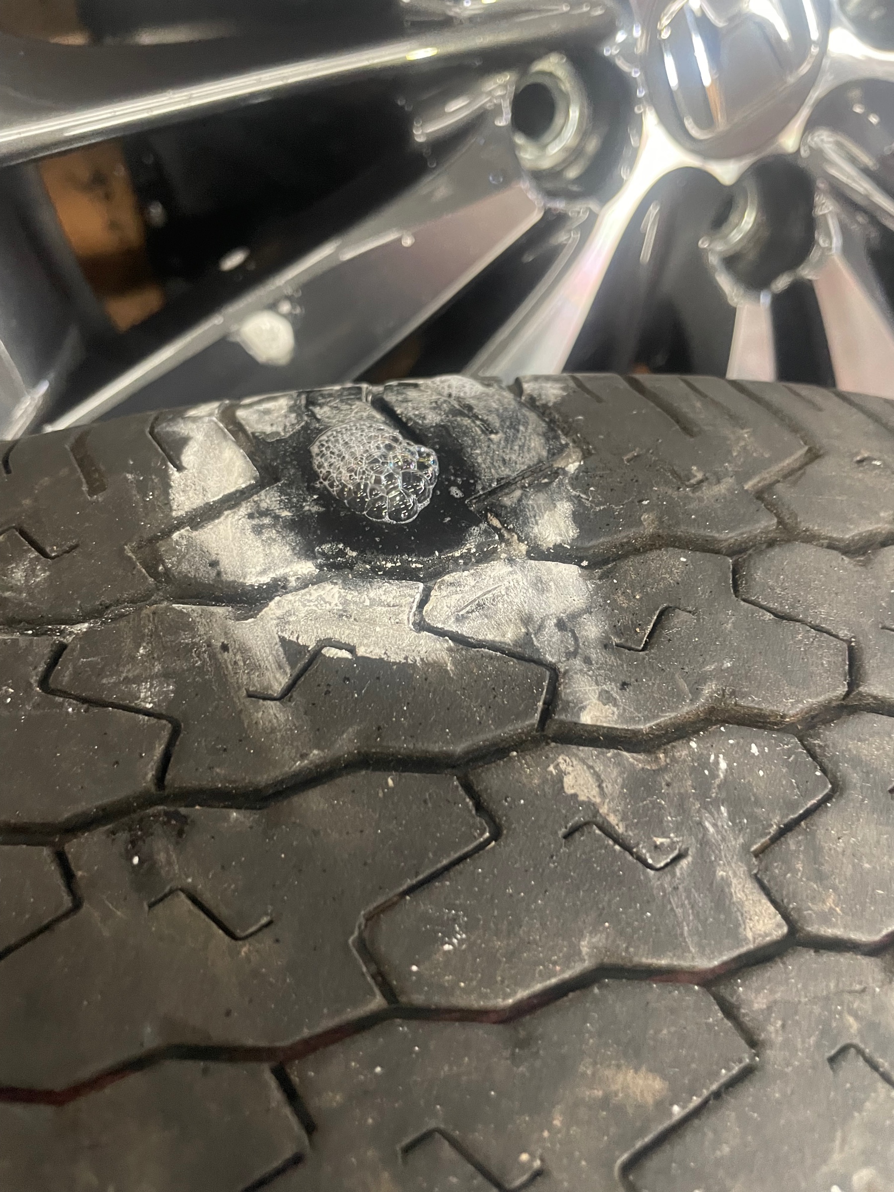 こちらは小さな釘が刺さっていたトラックのタイヤです。
