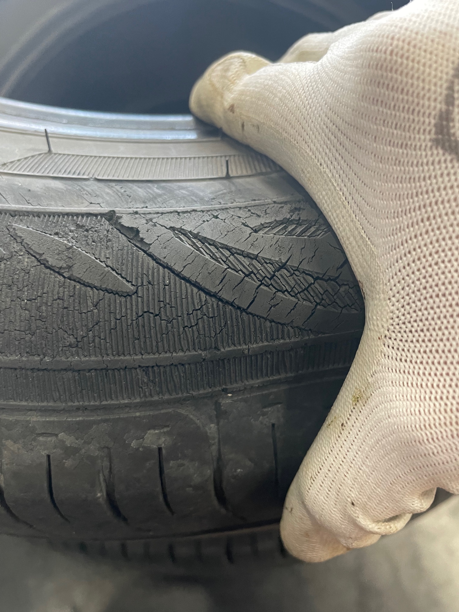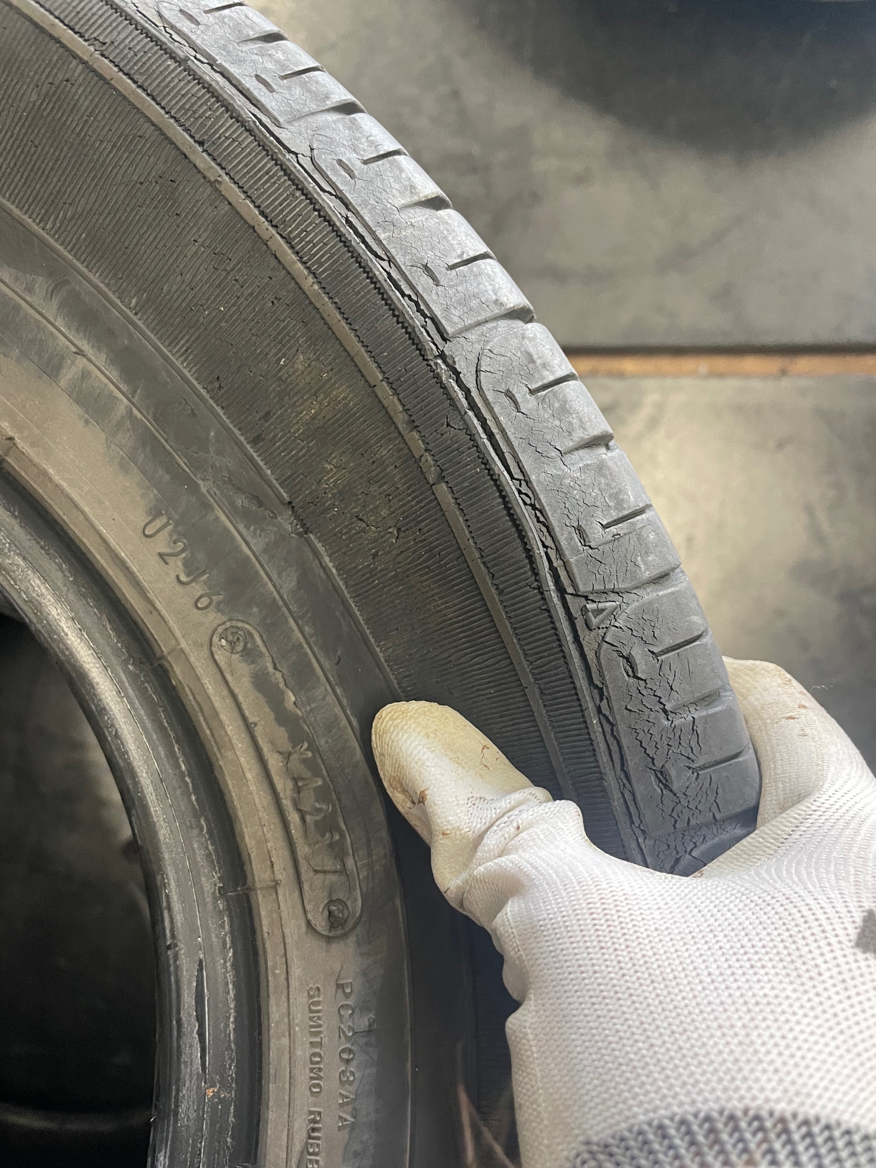 タイヤはゴムなので、時間が経つとこのようにひび割れが生じます!