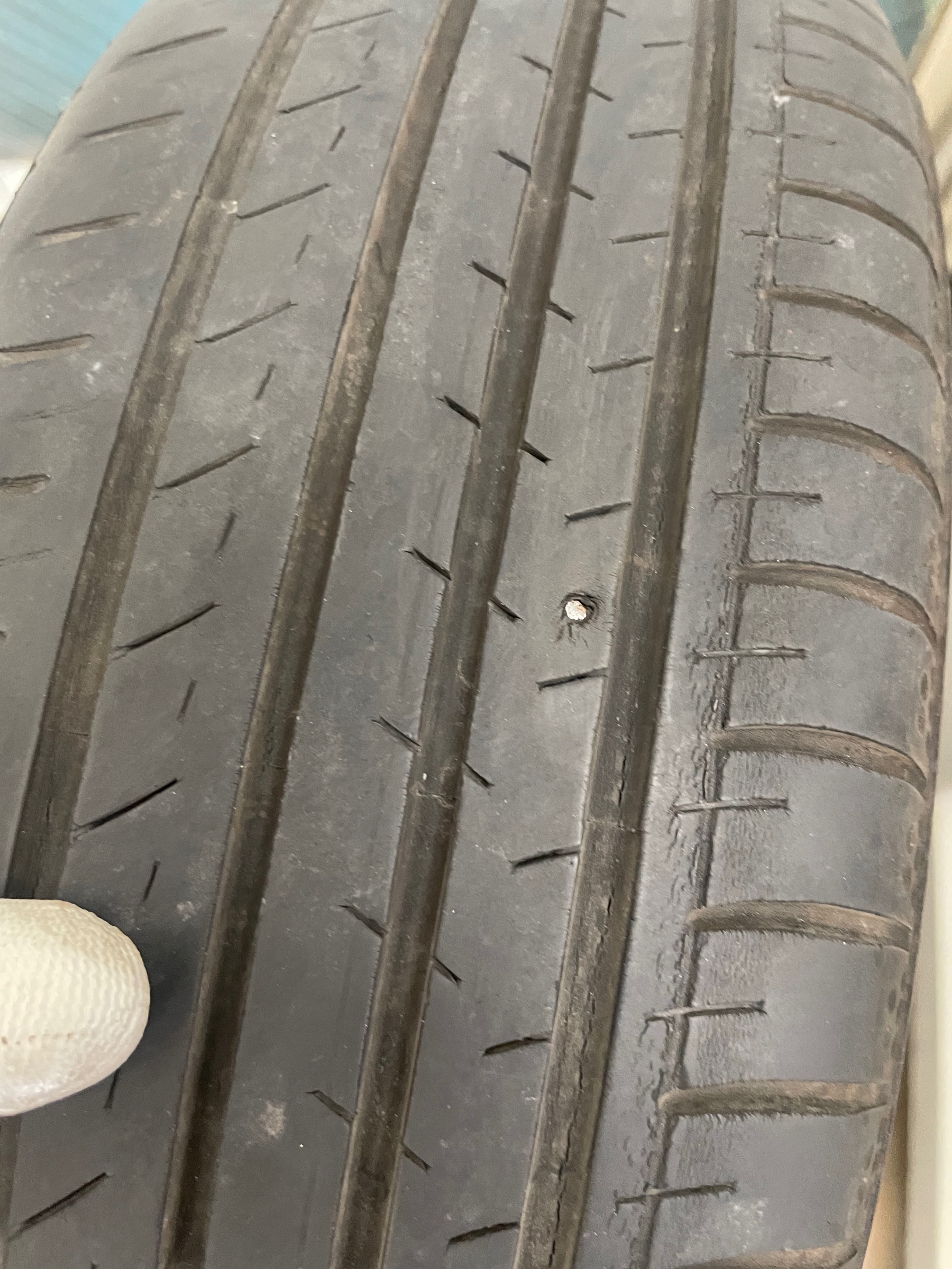 タイヤを確認させて頂くと、釘のようなものが刺さっています!