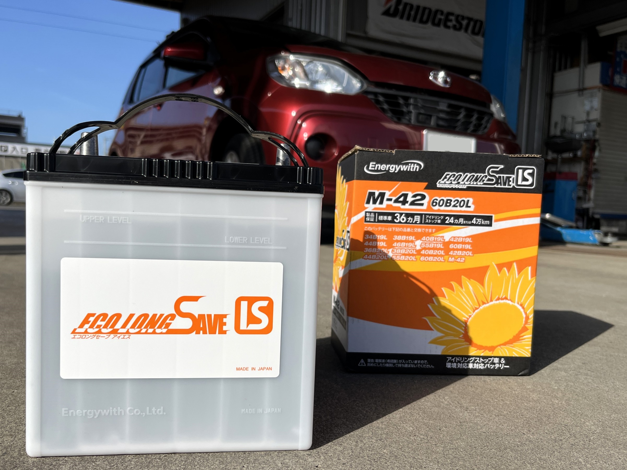 バッテリーはエナジーウィズのエコロングセーブIS M-42です。