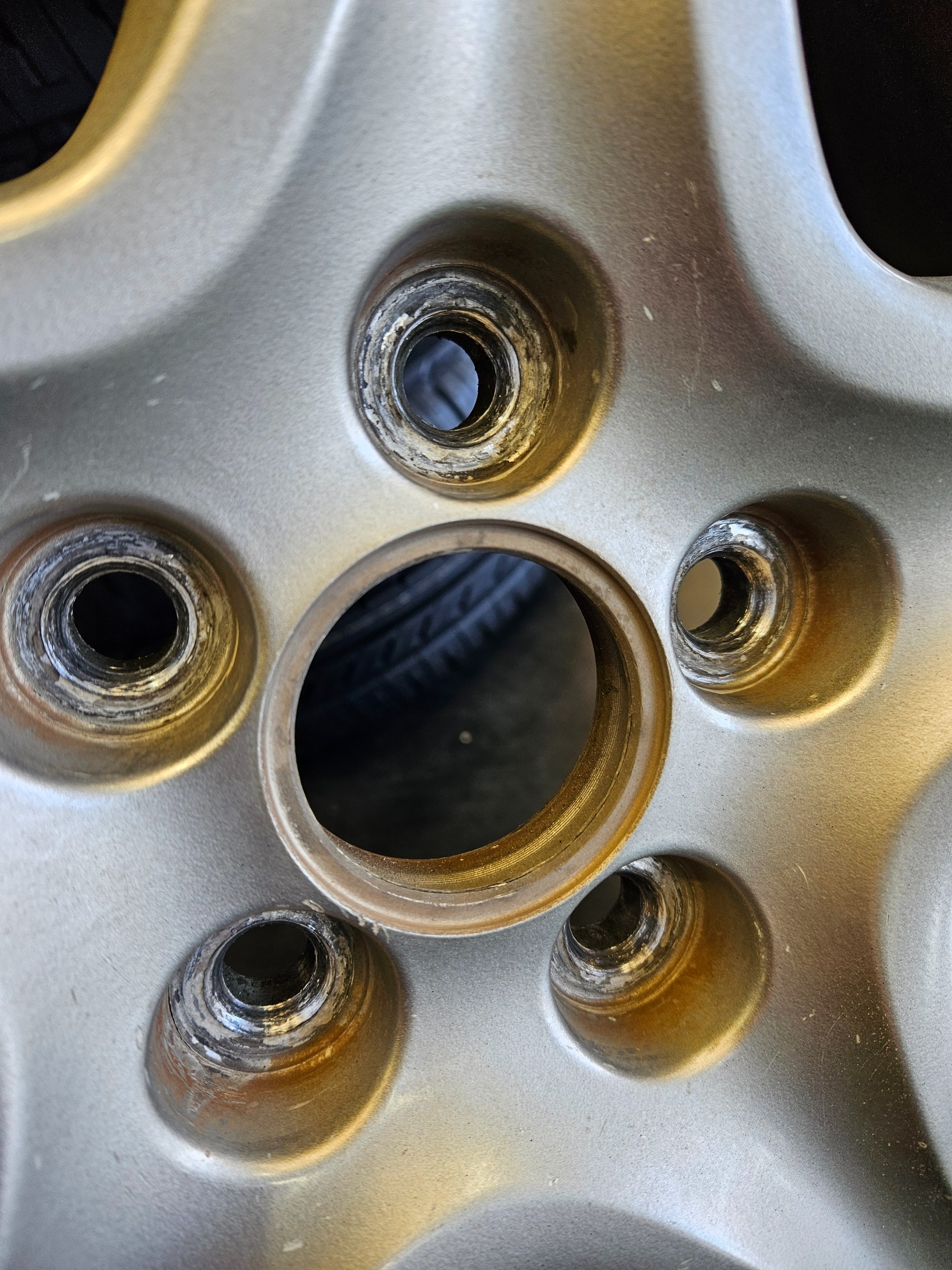 昨日お預かりしましたお客様のホイールを点検しましたところ、ホイールナットの取り付け部分が長年の使用で楕円やえぐれてる箇所があり、車に装着した後も、ナットの緩みが出る可能性が高いことがわかりました