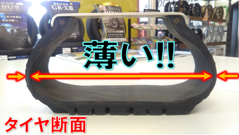 その理由は下部画像のタイヤ断面をご覧になれば一目瞭然→