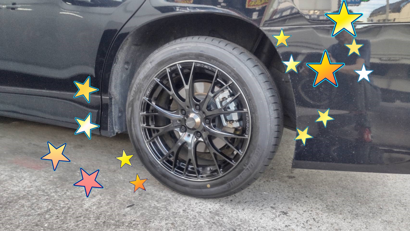 ボディ色とホイールの色がばっちりですね。いかつさが増しますね。