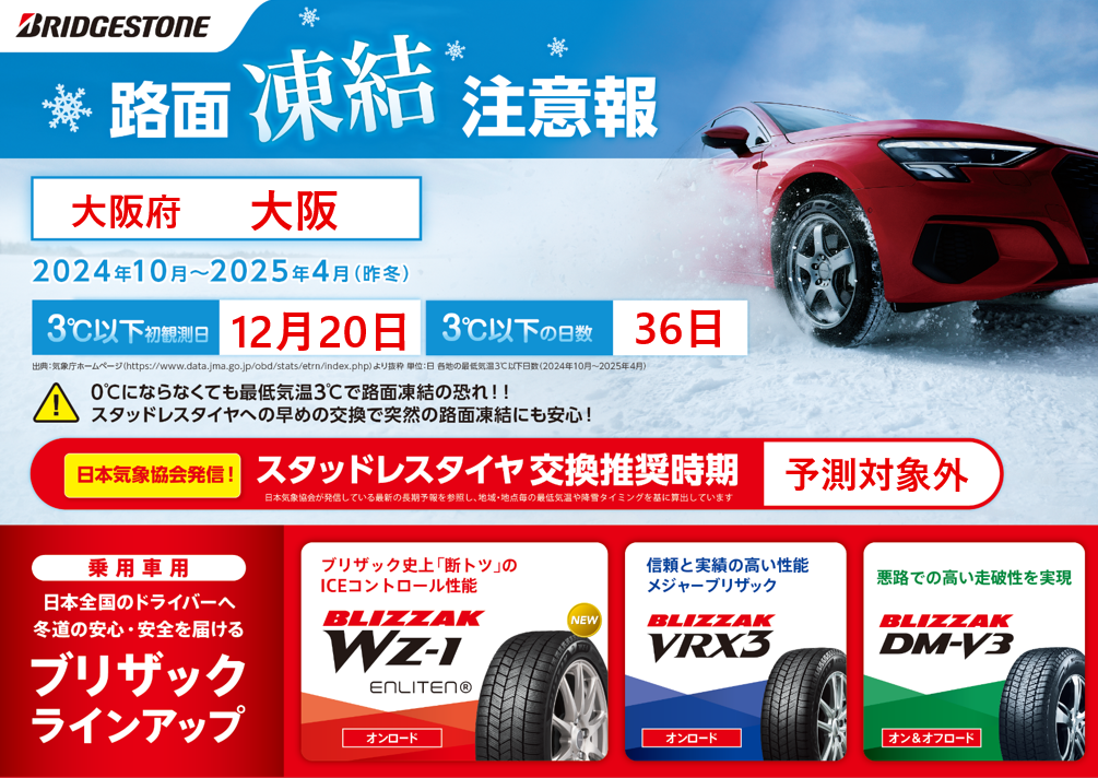 今年の冬は、12/20頃に路面凍結注意報が出ております。