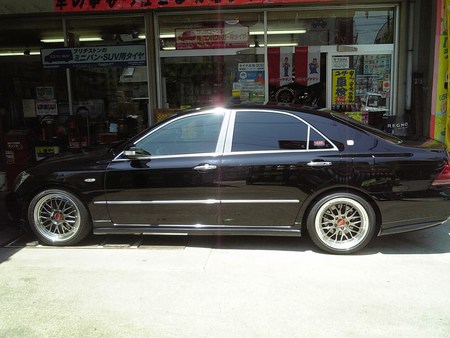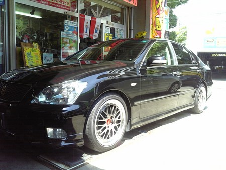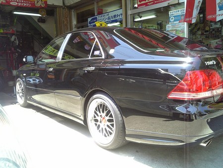 このゼロクラウンは、当店のお客様のお車ですがなんと!!営業車両ですよ。タイヤは、レグノ、アルミホイールは、BBS<限定バージョン>18インチ前後太さも違いフェンダーつらいちでっせ~更にTOM’S使用の足回りでローダウン済み、乗り心地を保ちつつ走行フィーリングもUPと最高の移動空間を実現しております。普段乗ることが出来ないタクシーいかがですか。もちろん、車検もバッチグー。