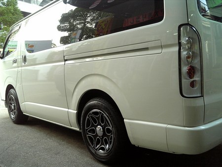 ょ。シンプルでいて個性的なホイールだと思いませんか。当店は、結構ハイエース乗りのお