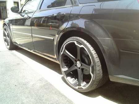 ナビの取り付けで1日中炎天下の中での作業になり揚句のはてには、半分熱中症になりかけました、皆さんもお気をつけください。対策として水と塩は欠かせません。これからのシーズンは、必需品? 私の話は、さておき先日お取り付けいたしました本国USAからお取り寄せの出来立てほやほやのホイールSET見てやってください。