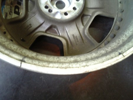 ホイールにヒビが入り(T◎T;)タイヤは見事に変磨耗してしまい交換の為に