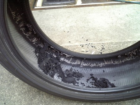 先日お越し頂いた方のタイヤが凄い事・・・になっていましたのでレポートいたします。