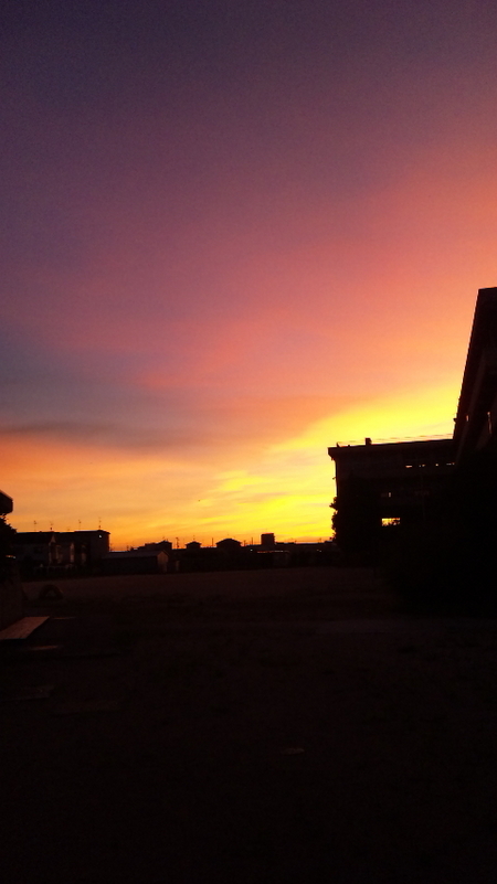 仕事を終えて、、、小学校で卓球して、、、校舎から見えた夕焼け、、、