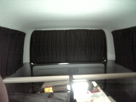 外も真っ暗、車内もカーテンで真っ暗で何にも見えません。 ( ! ! )