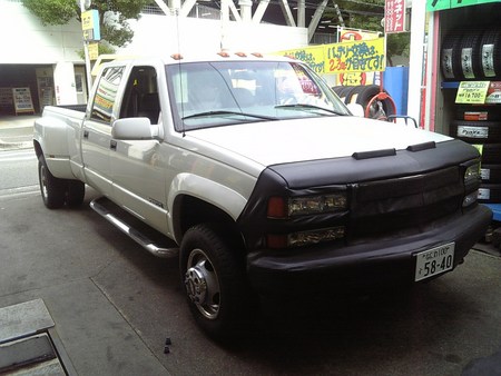 本籍アメリカ 車両重量3090kg 長さ656cm 幅242cm 高さ185cm 型式不明 総排気量7,43L 更にタイヤが6本???
