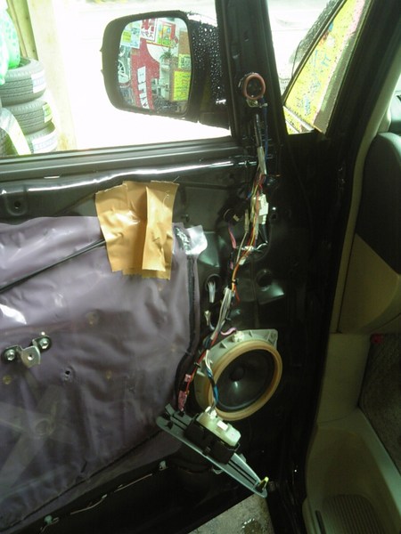 出来あがったミラーを今度は取り行け、配線、ドアの間のゴム管の中に配線を通して車内の配線への結線<ハンダ付け>配線を取りまとめて今度は、内張りを元に戻して終了です。