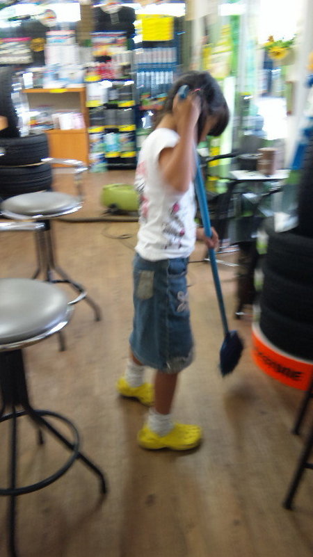 ということでお出かけ前の、、、大掃除!うちのちっちゃいアルバイト店員!