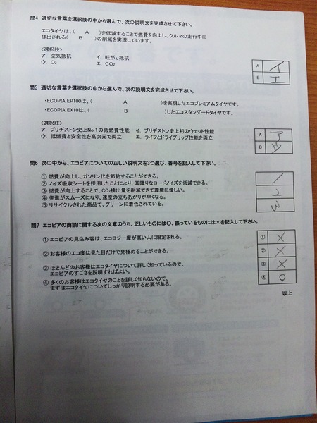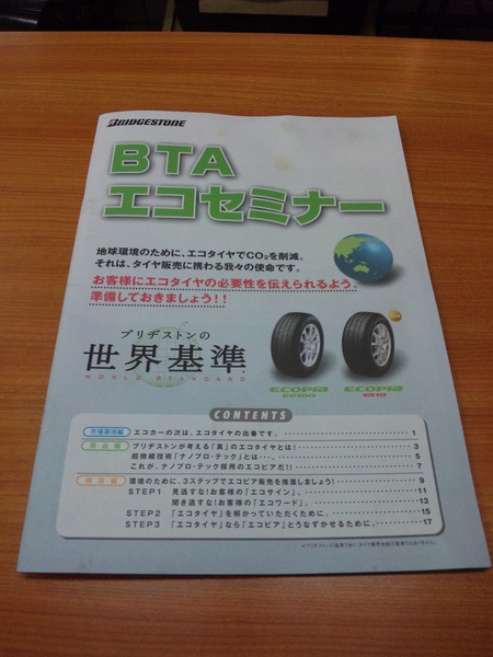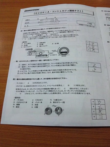 先日、ブリヂストンの世界基準タイヤECOPIAの認定テストを先日営業マンA君から宿題と