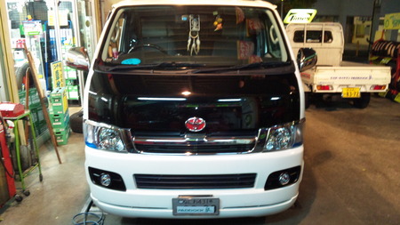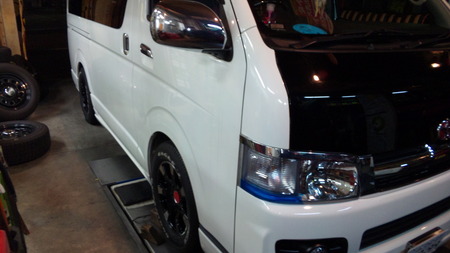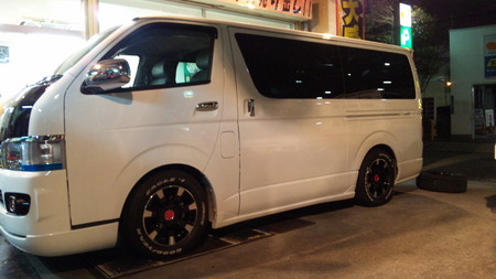 当店常連のお客様Mさんの愛車ハイエースにスタッドレスから夏用タイヤに交換いただく際に