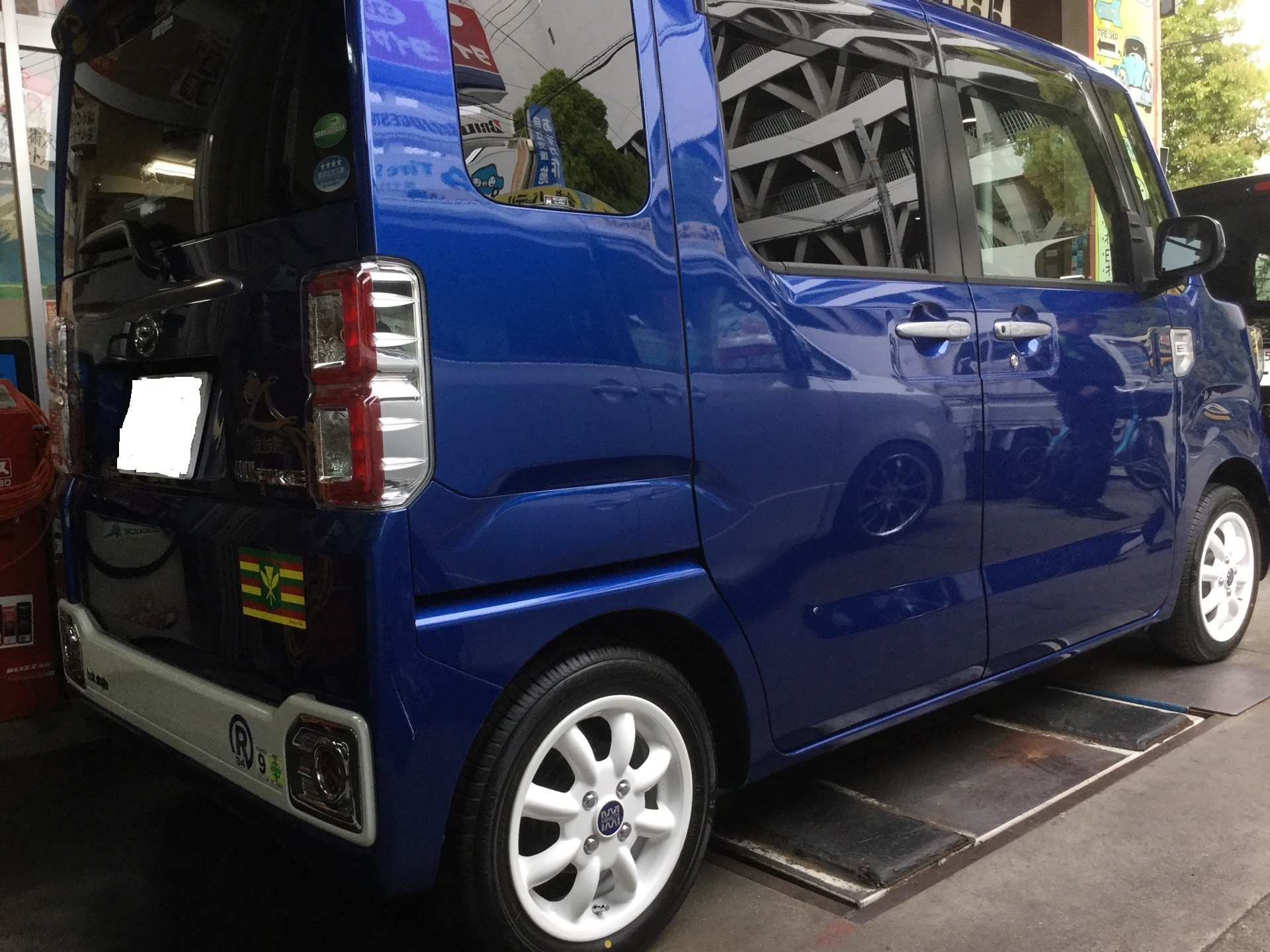 本日の( `ー´)ノ愛車のリフォームいたしますは、W君のウェイクにタイヤ&ホイールをSETでお買い上げい