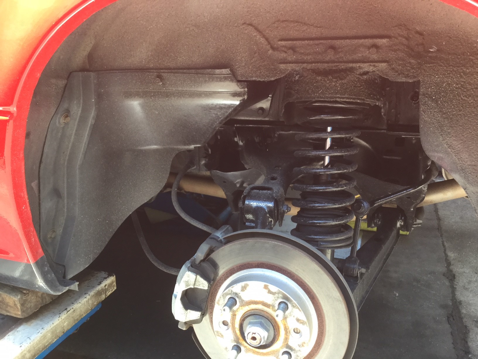 純正のリヤーです。前後ともダブルウィッシュボーンでこのクラスでは当時贅沢な仕様でした。