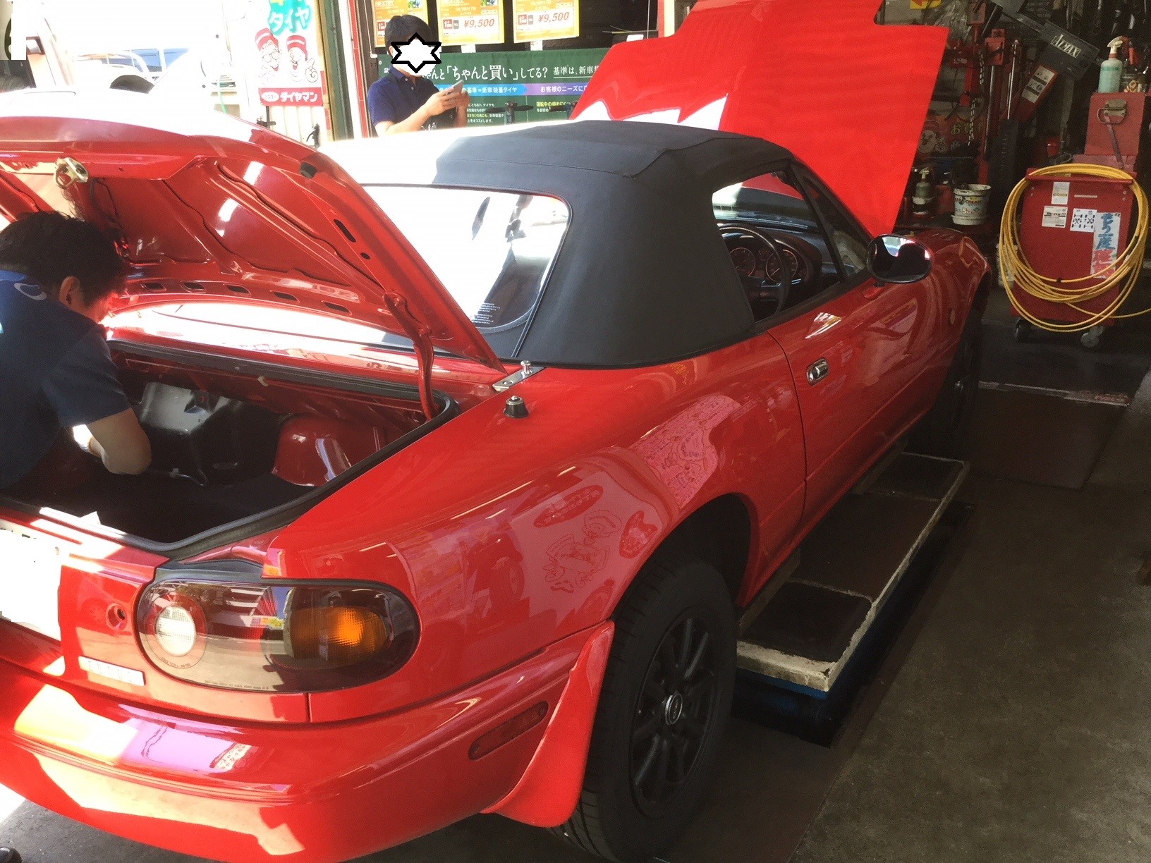 実はですね、私たちにとっては非常に懐かしいお車ユーノスロードスターの愛車のリフォーム