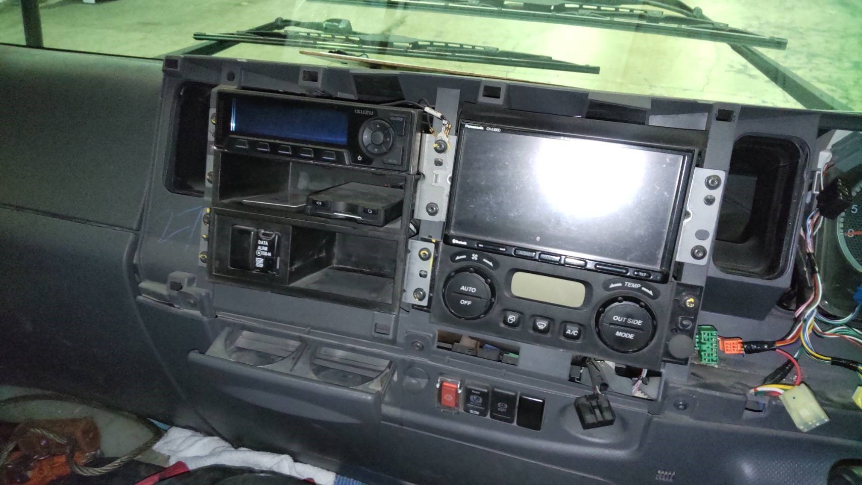 フェイスパネルを取り外し、左右のデッキ、ETC、デジタコを取り外します。
