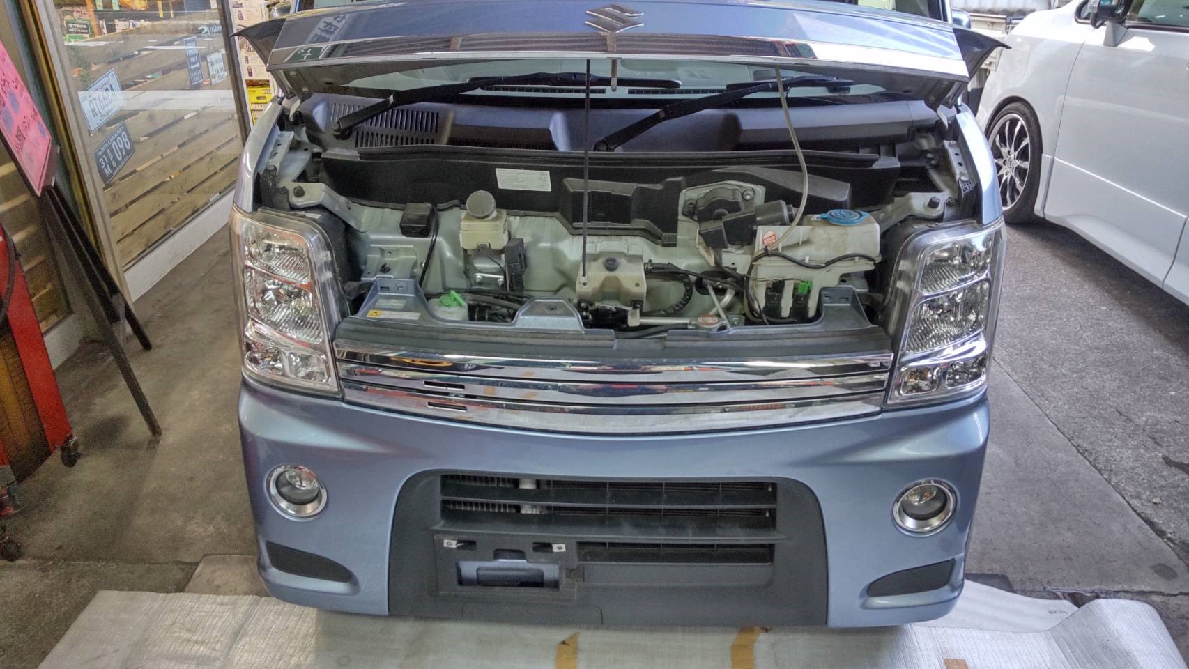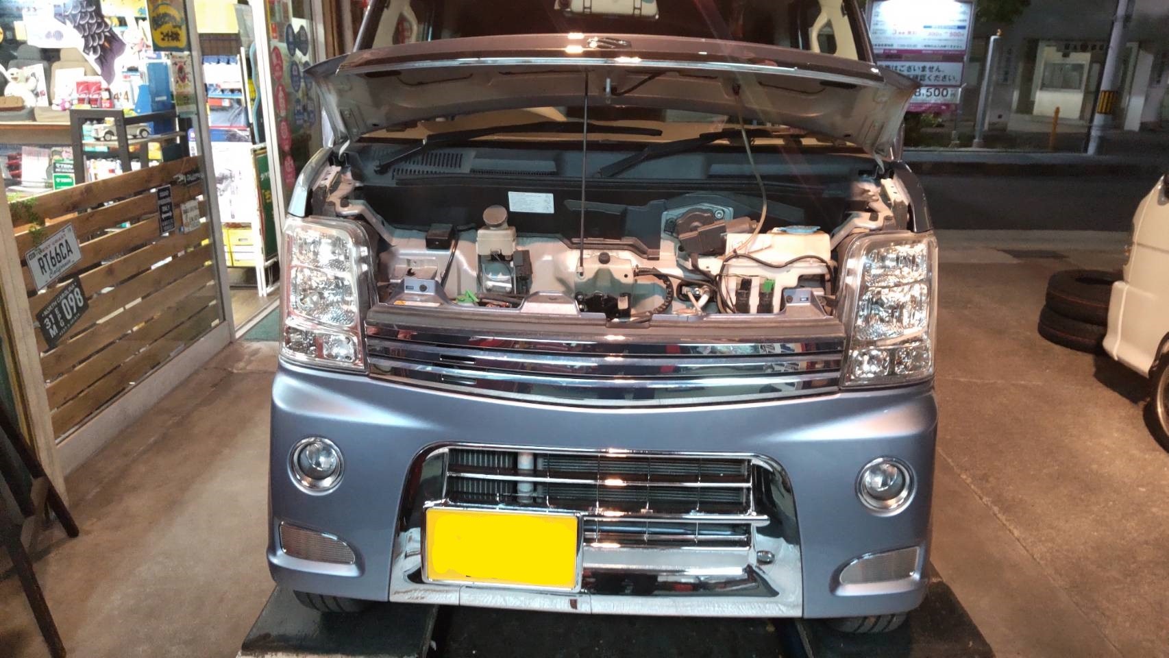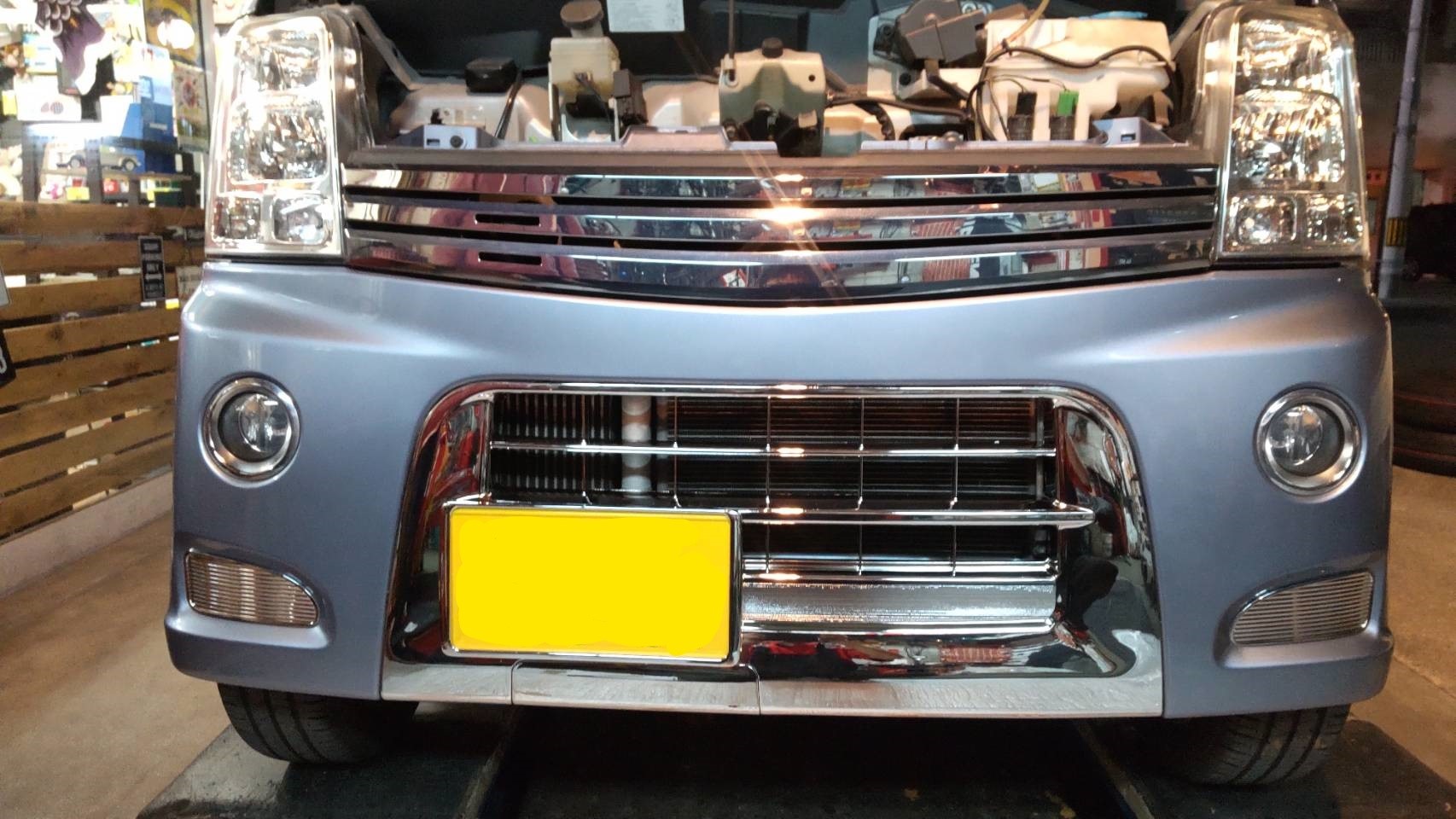 それでは、本日のお仕事は、Kさんのご依頼でメッキバンパーグリル装着編です。