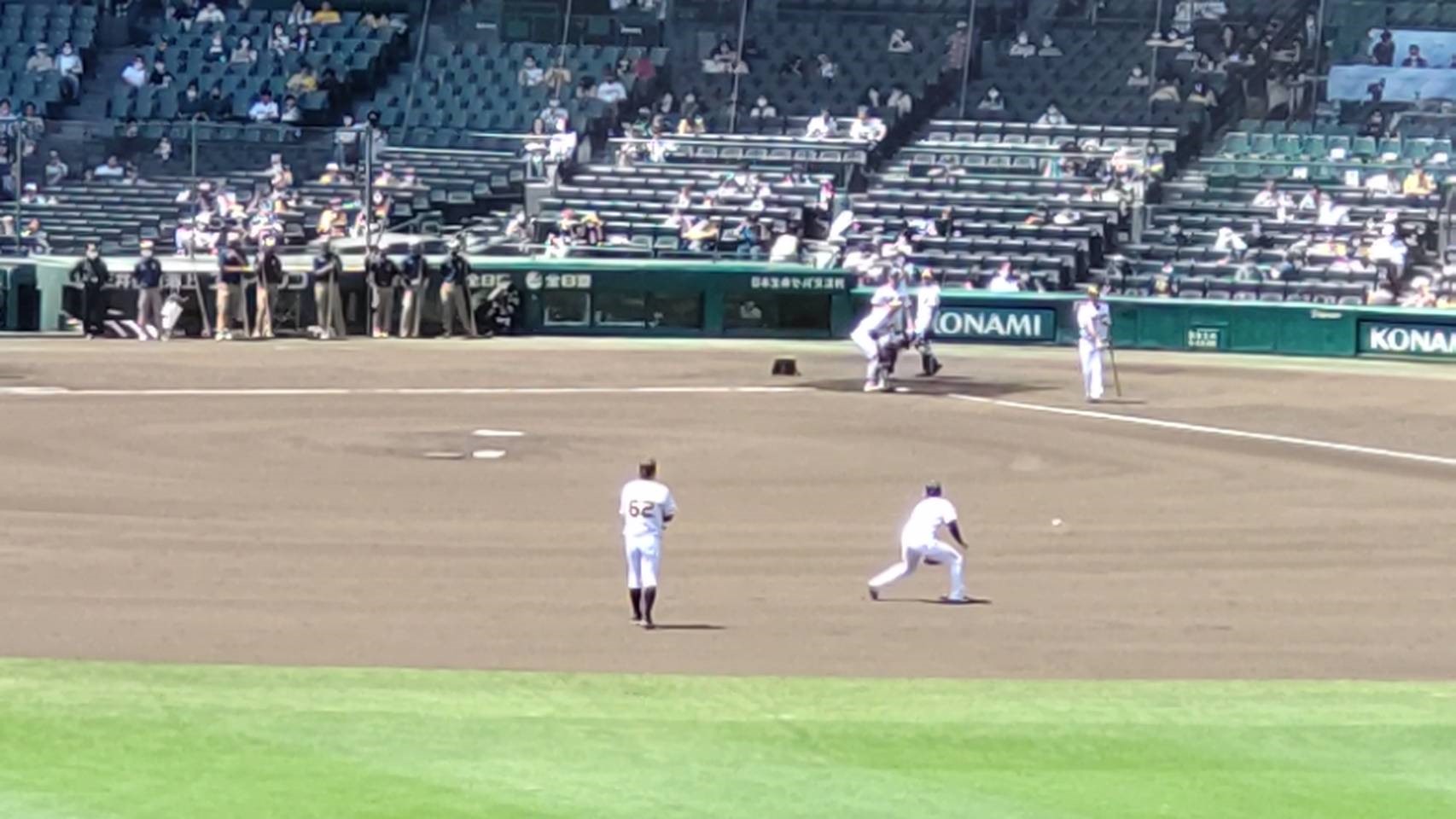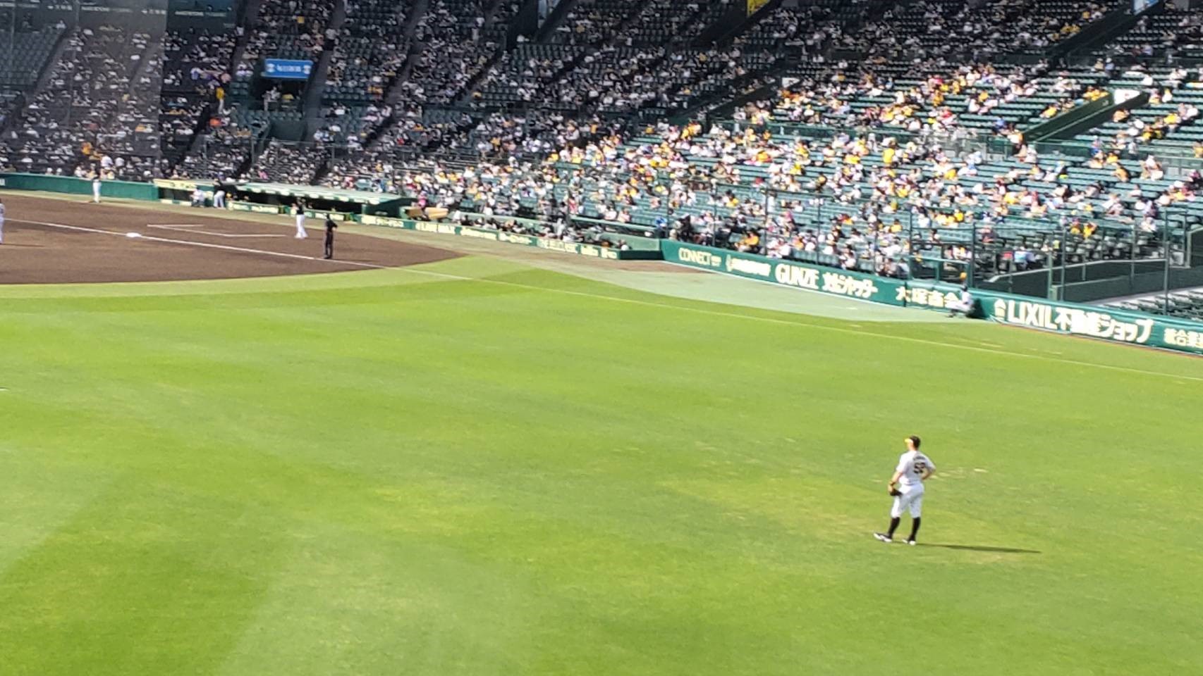 いつもながら甲子園の芝生は、本当に綺麗です。甲子園園芸さんたちの技術の賜物ですね。