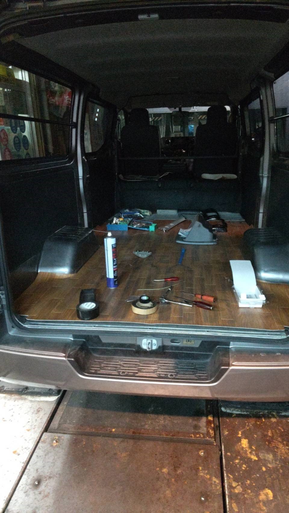 まずは、バックドアの及びドアパネルの取り外しです。