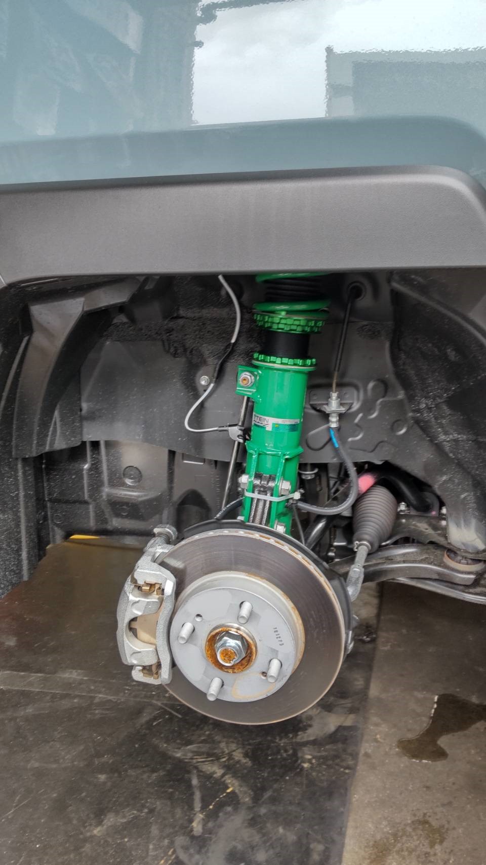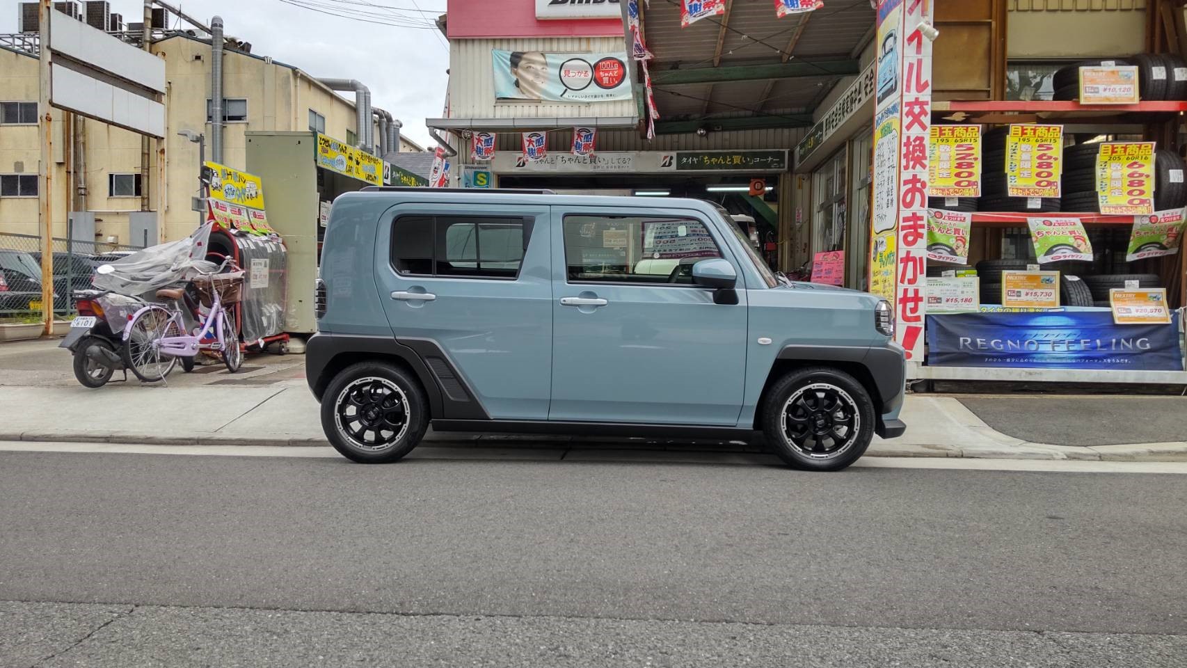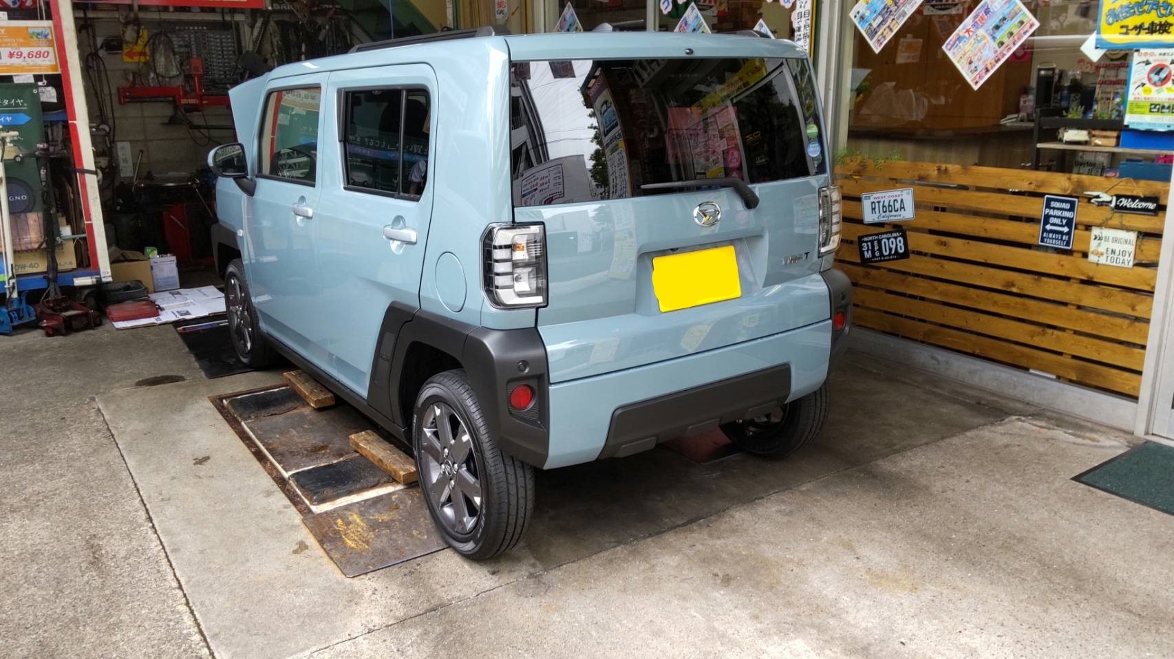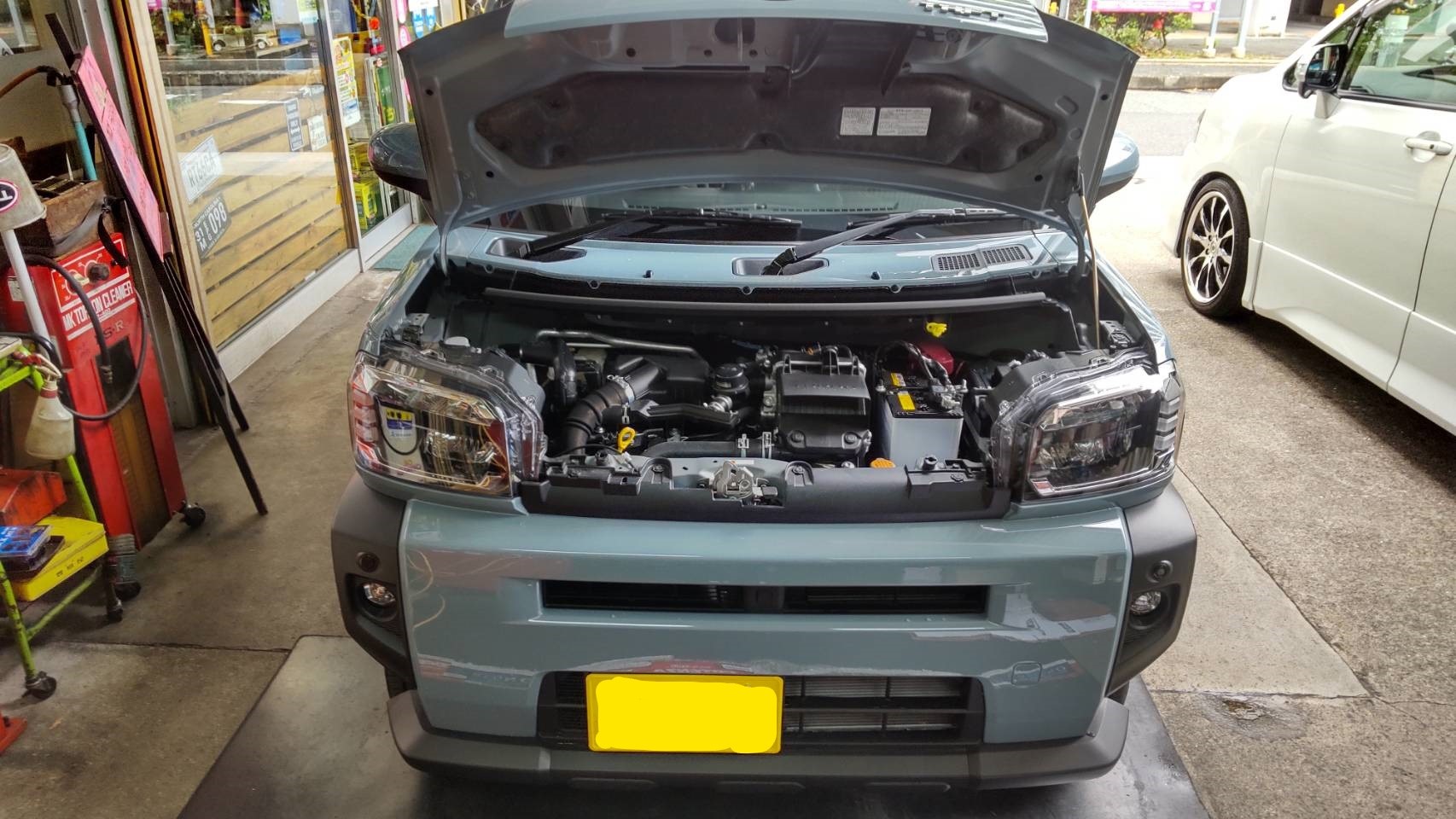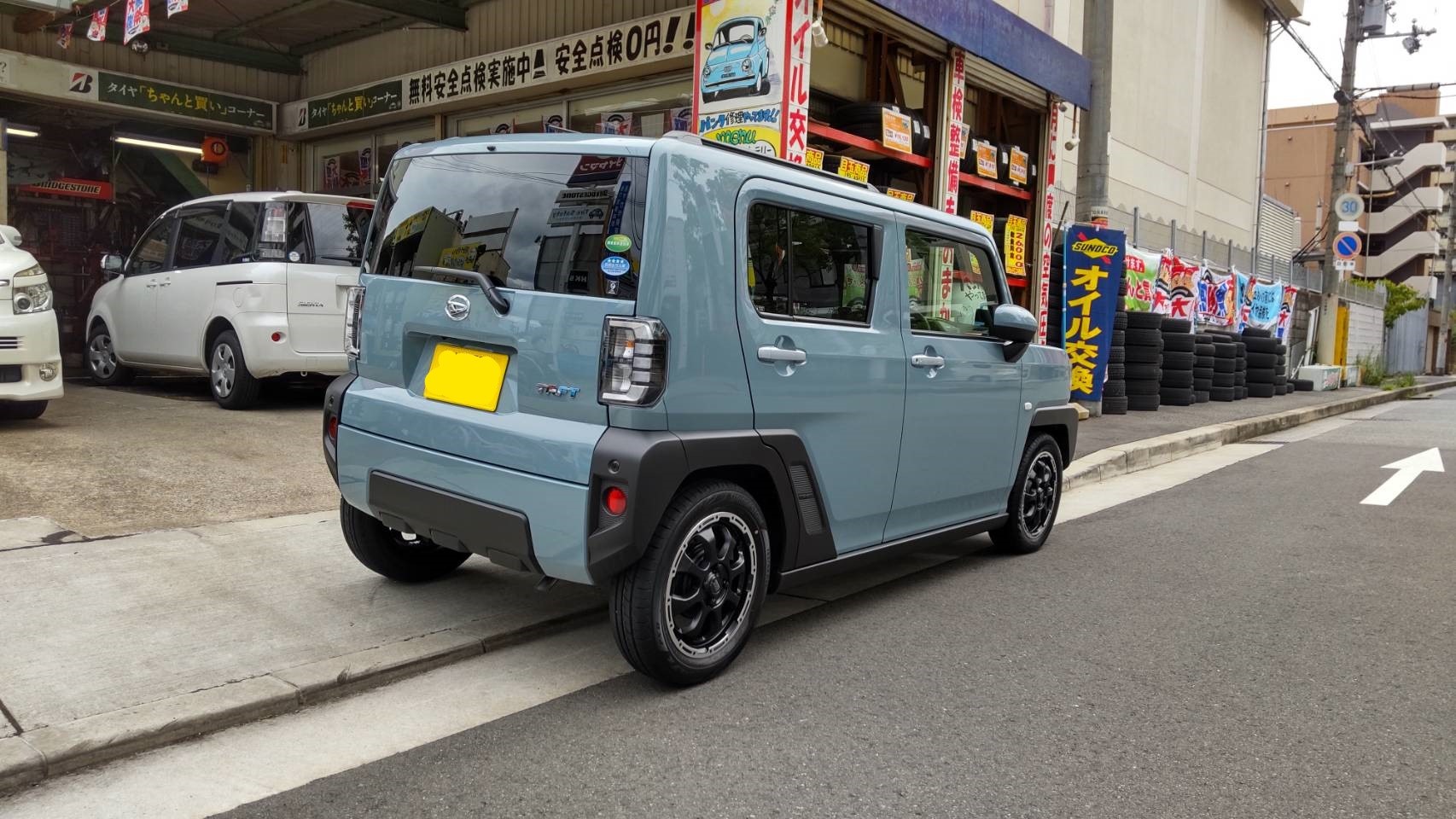 ダイハツのタフトにタイヤ&ホイール、TEINの車高調、ブリッツのエアークリーナー、オイル他の交換編です。