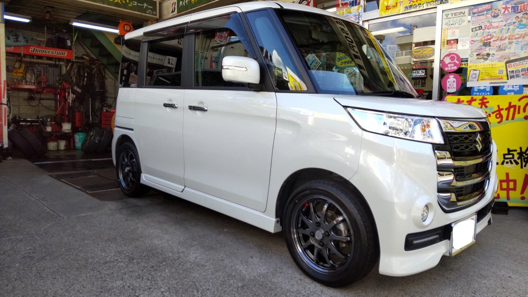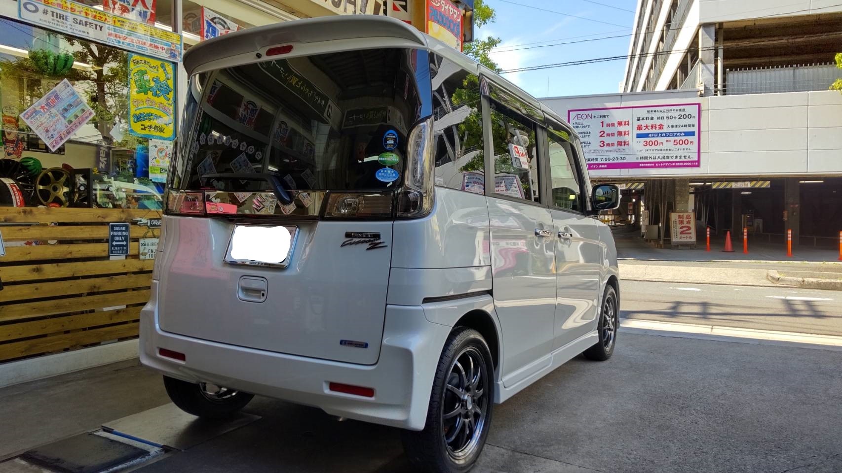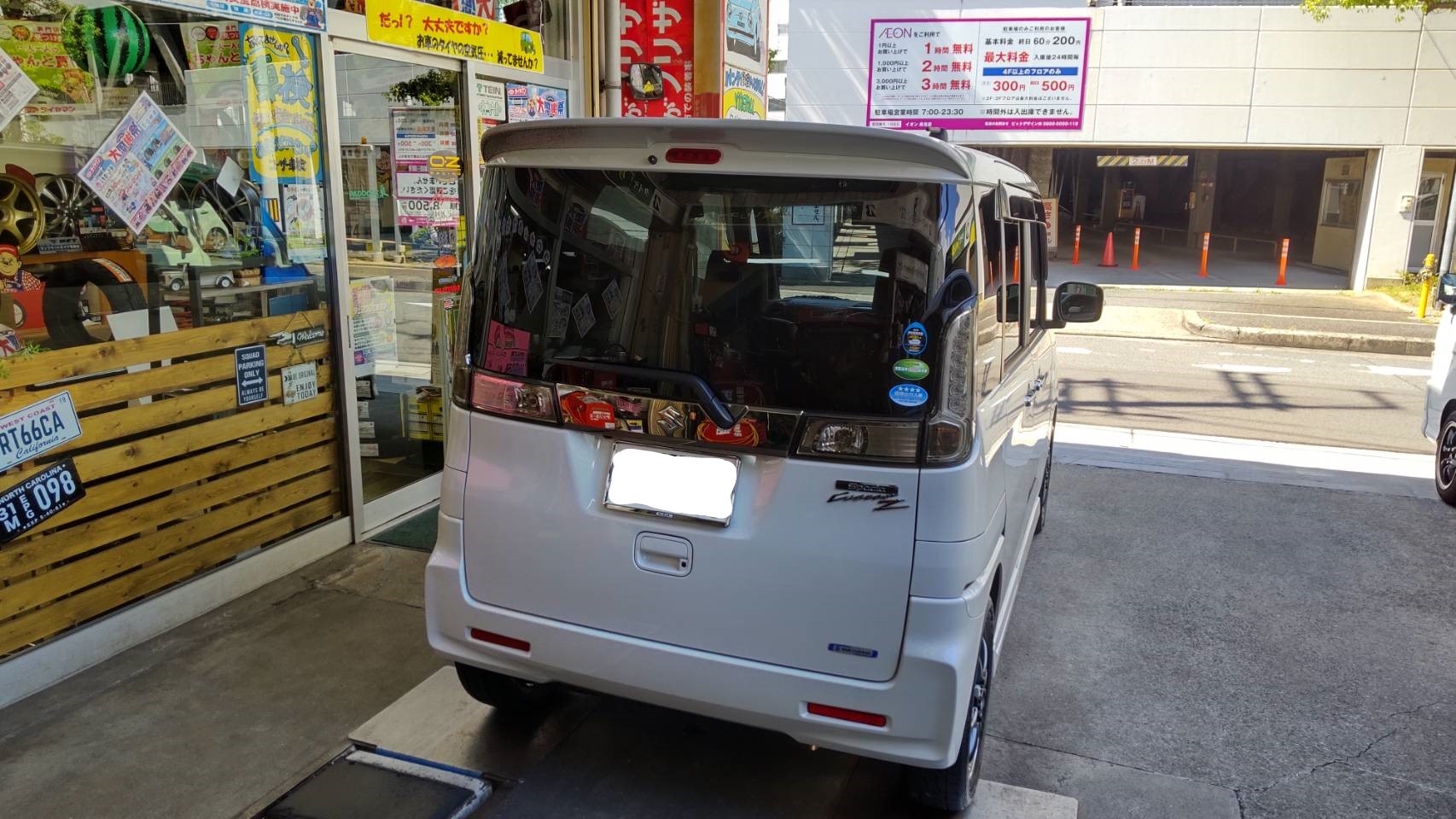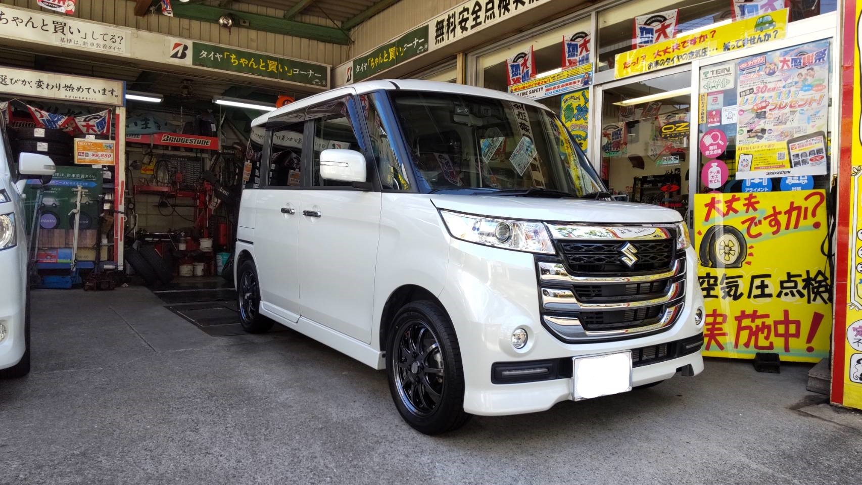 お得意先の奥様の愛車スペーシアにタイヤ&ホイールをお買い上げいただきましたので、
