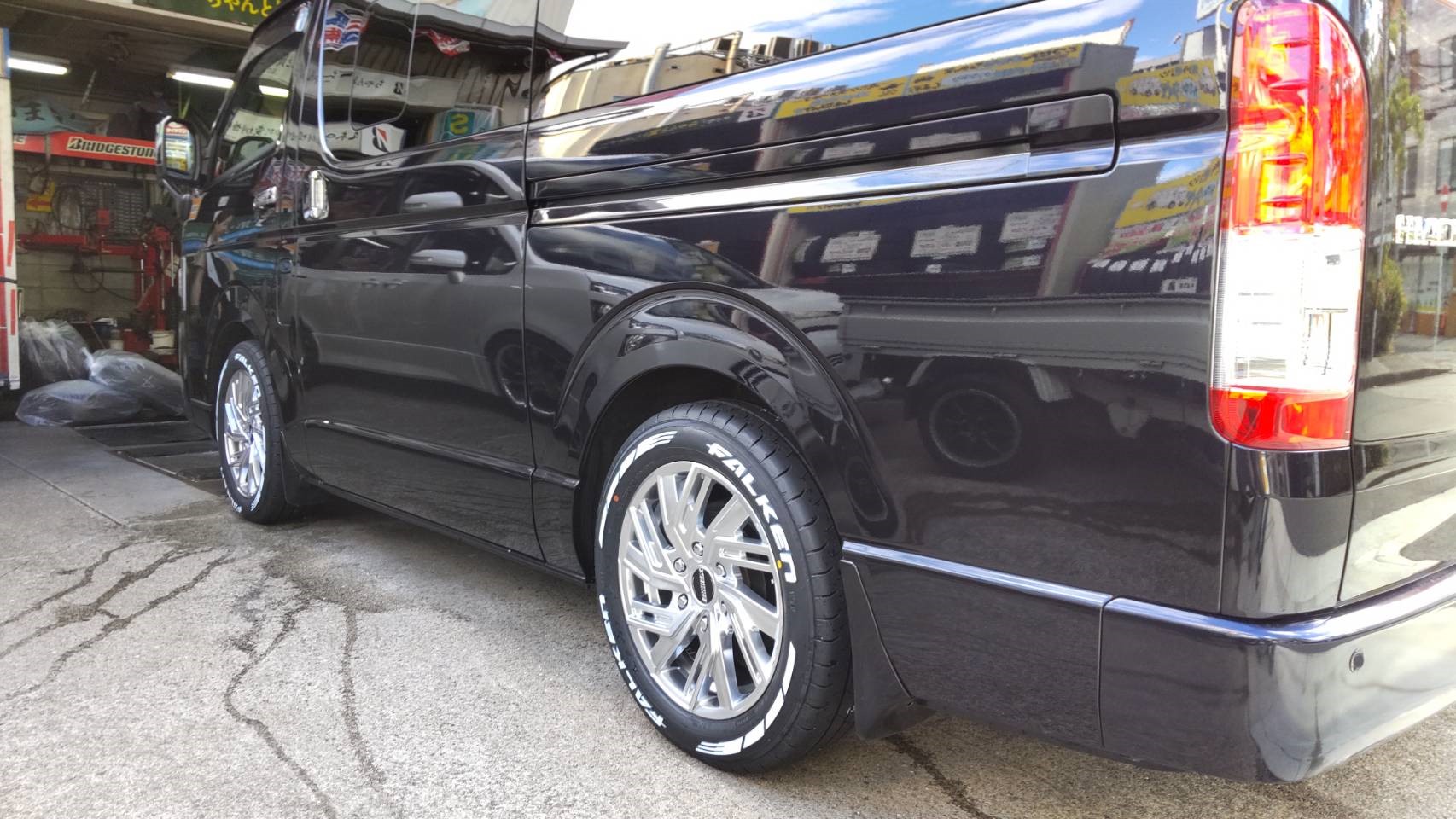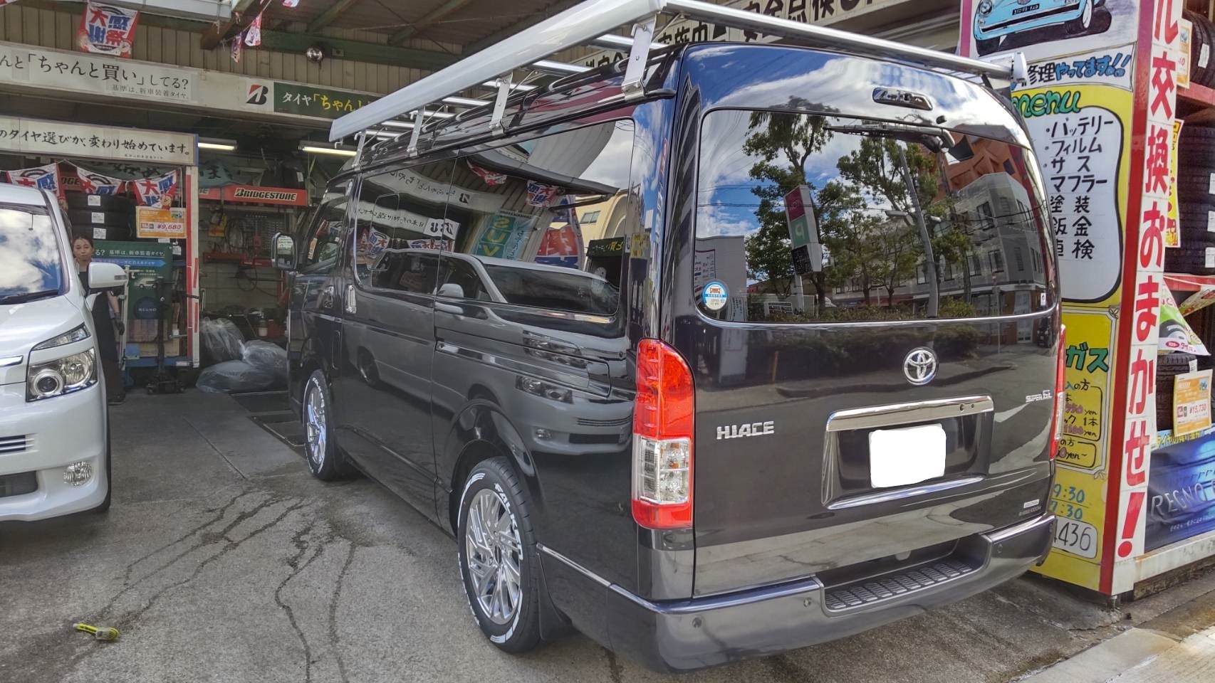 ひとり言は、これくらいにいたしまして、お得意先の社長の遊び車ハイエースにタイヤ&ホイールを