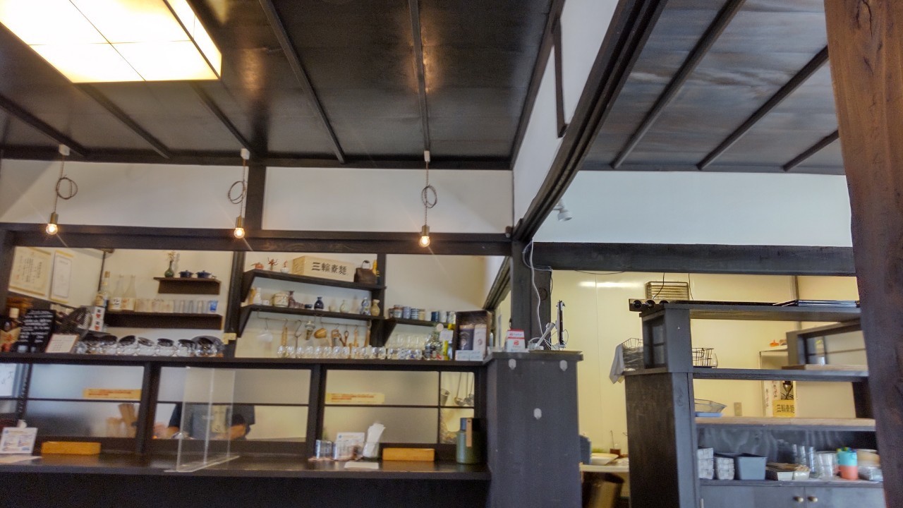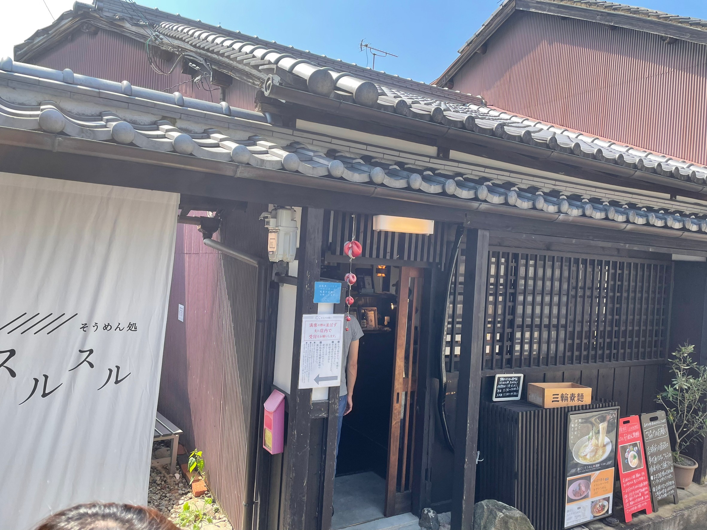 さっそく目的のそうめん屋さんに、、、こじんまりして味のある店構えの中に入りますと。