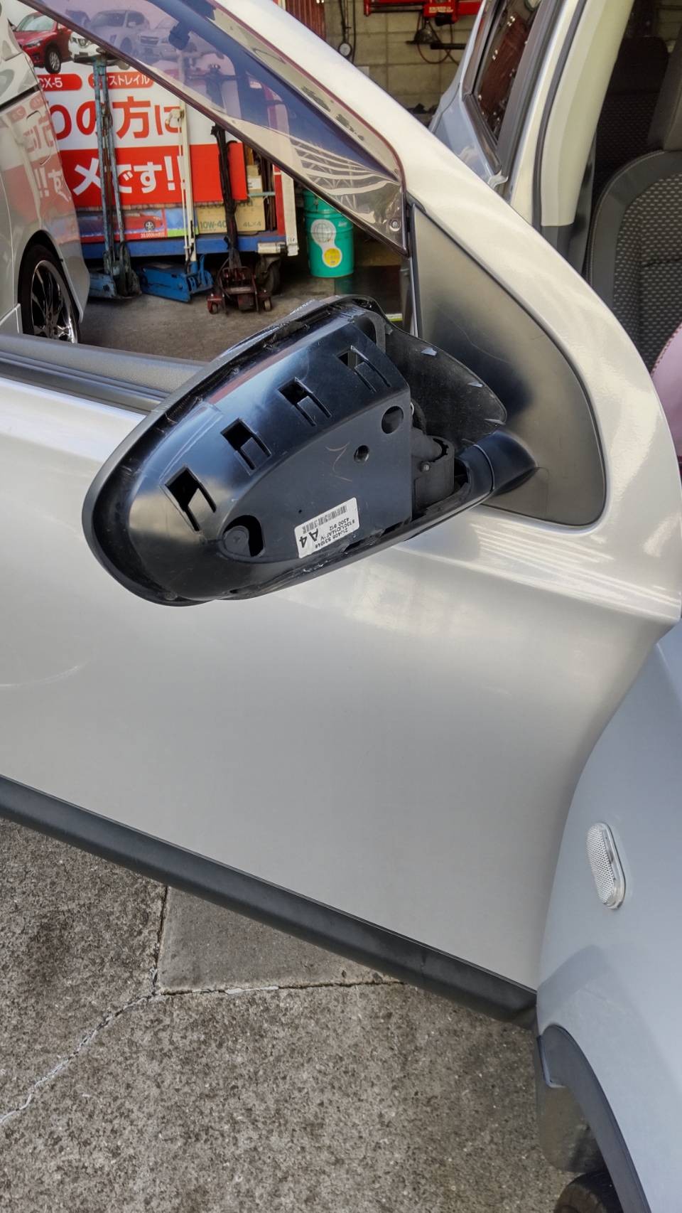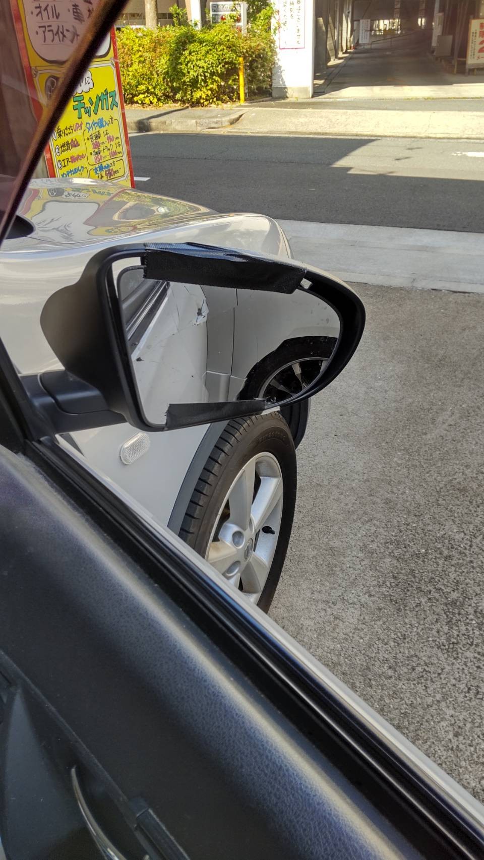ミラーカバーは、飛んで行ってしまい、ミラーは、亀裂が入って使い物になりません。