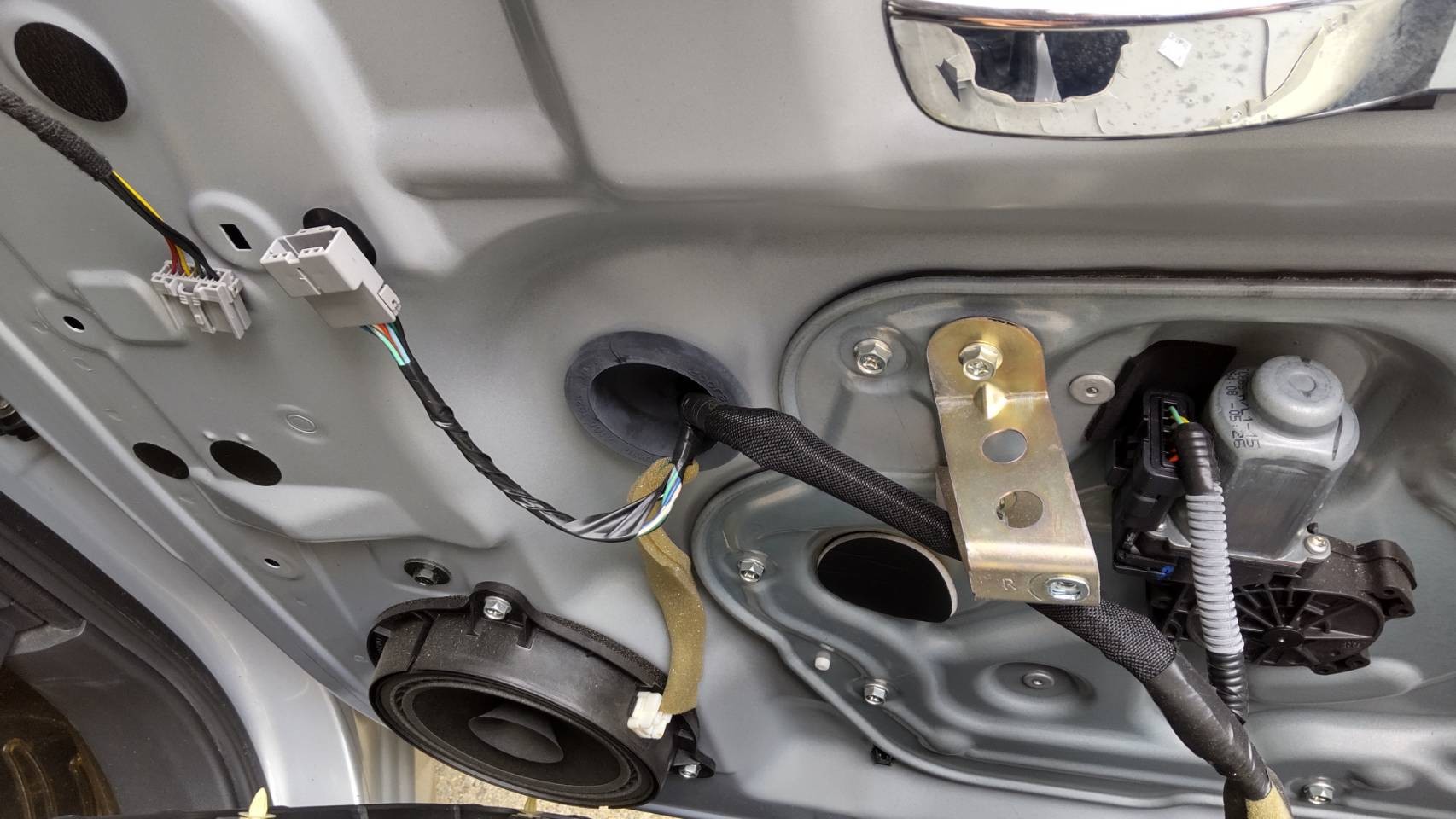配線をつないで内張を戻して取り替え完了です。