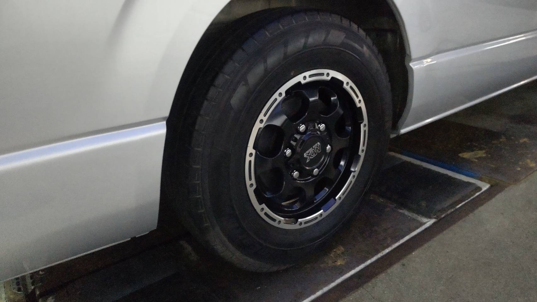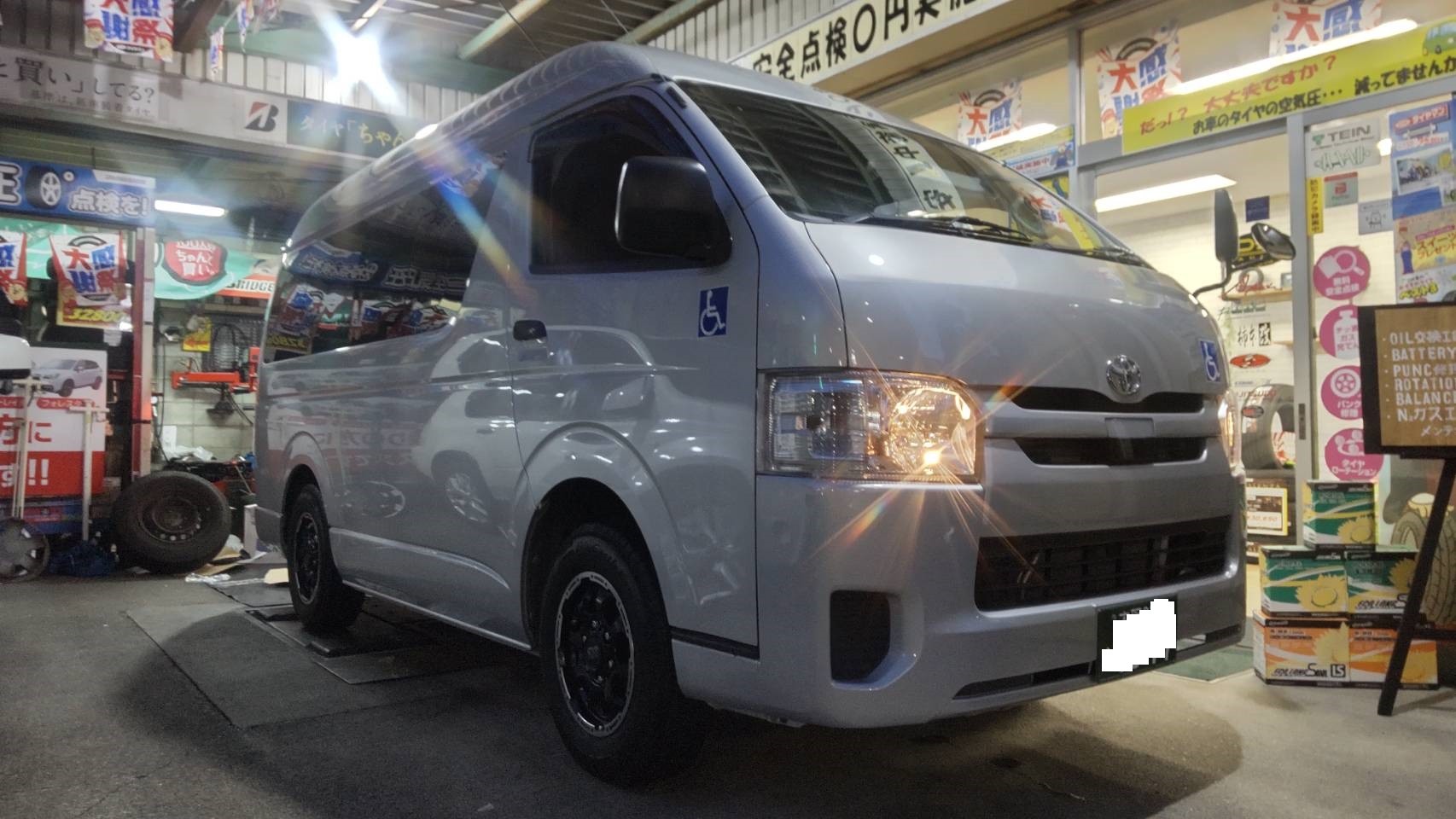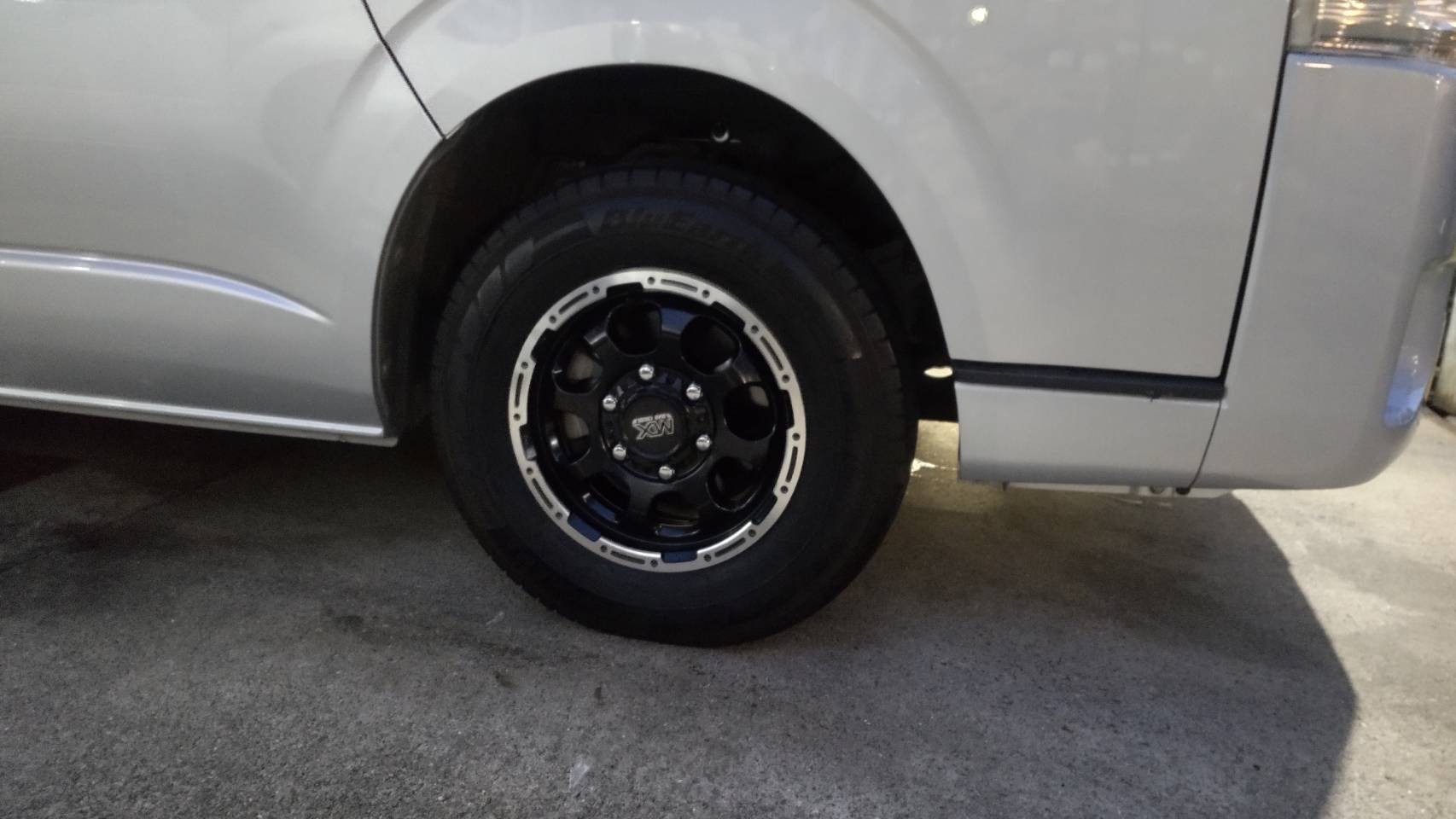 それでは、本日のお仕事は、MさんのハイエースにホイールタイヤSET編です。