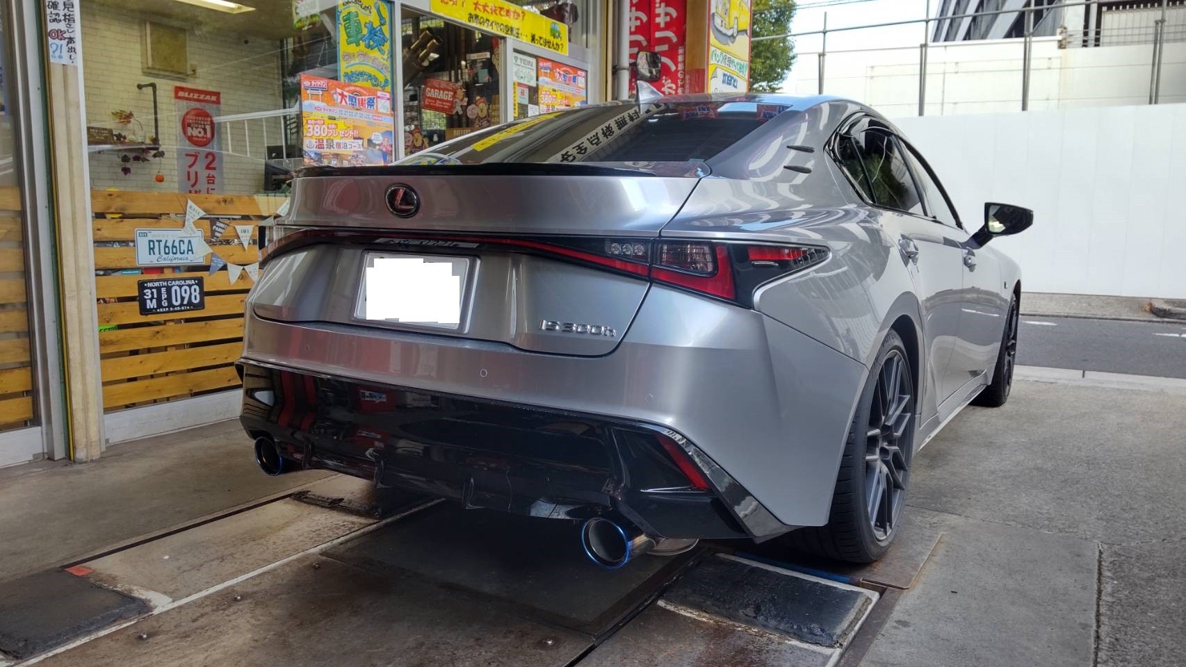それでは、常連のUさんの新車レクサスIS300hハイブリッドに柿本さんのマフラーをお買い上げいただきまし