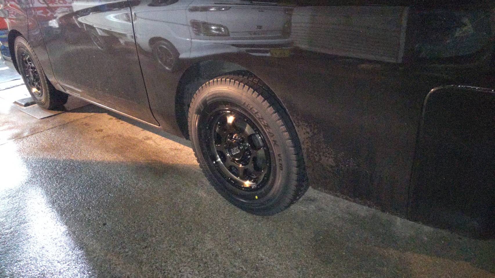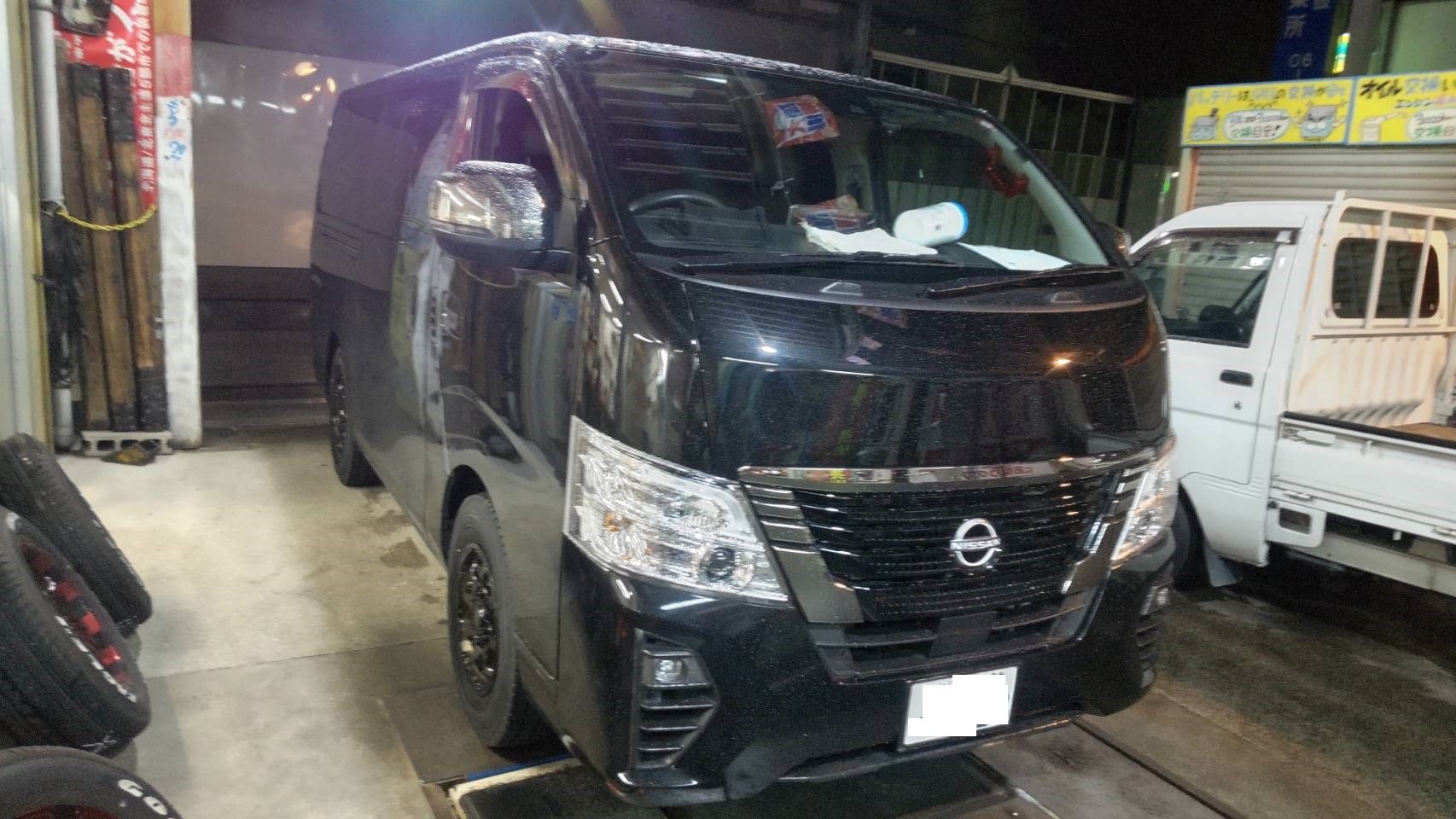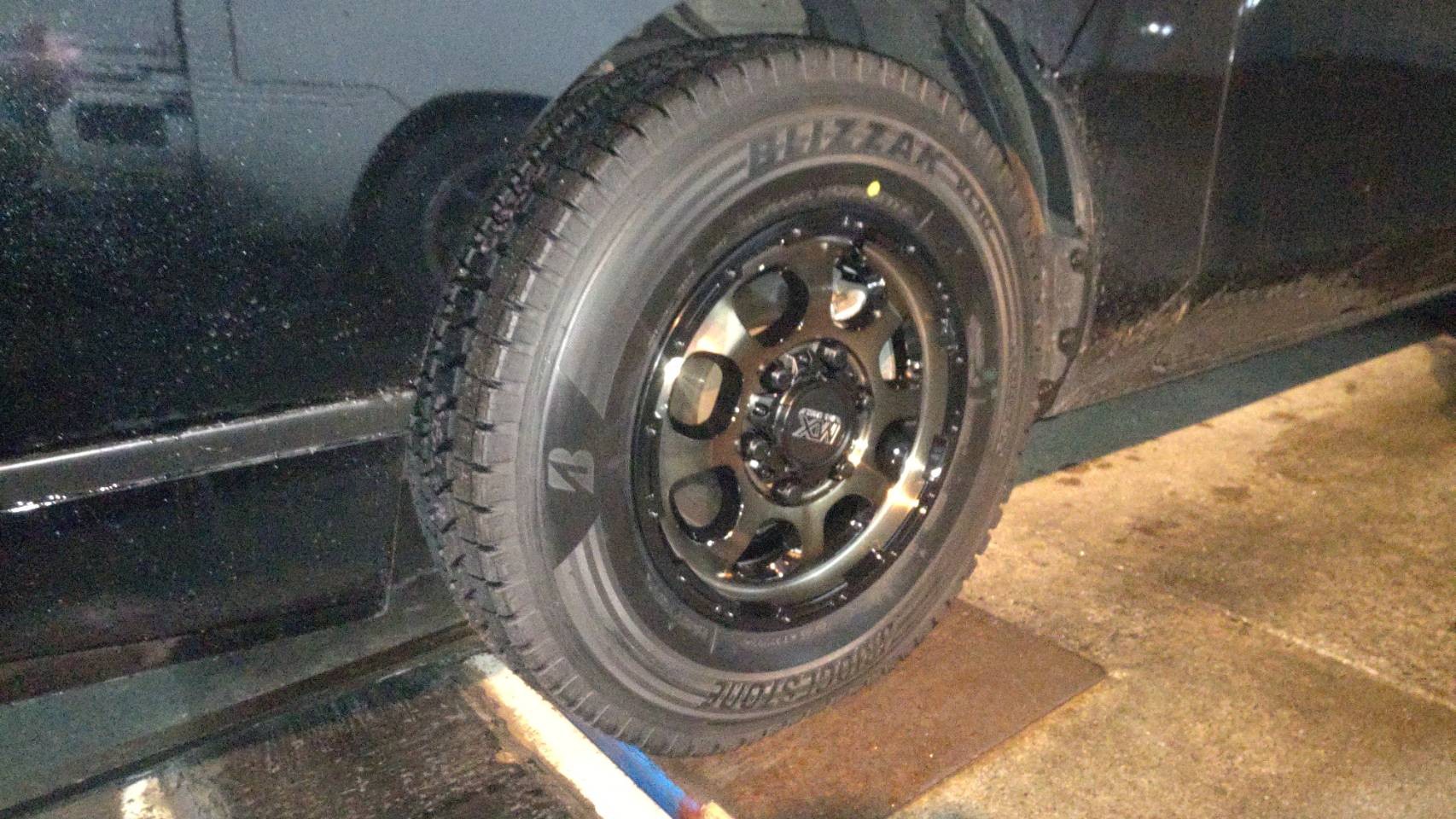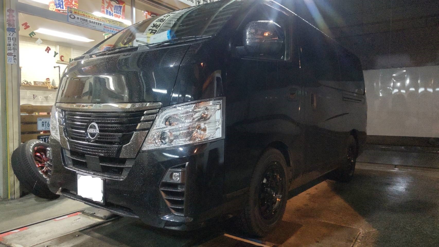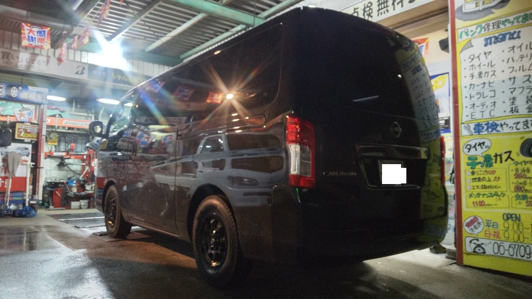 日産キャラバンにスタッドレスタイヤブリザックVL10+ホイールはマッドクロスGRACEお取り付けです。
