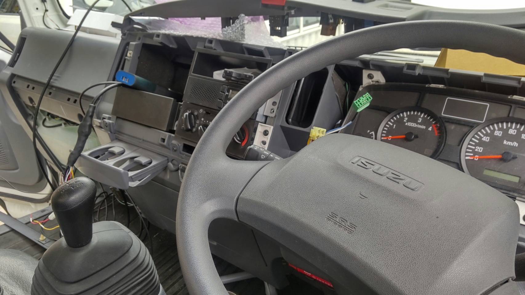 まずは、リヤーカメラの取付、防水加工、配線の取り回しでキャビンまで通していきます。