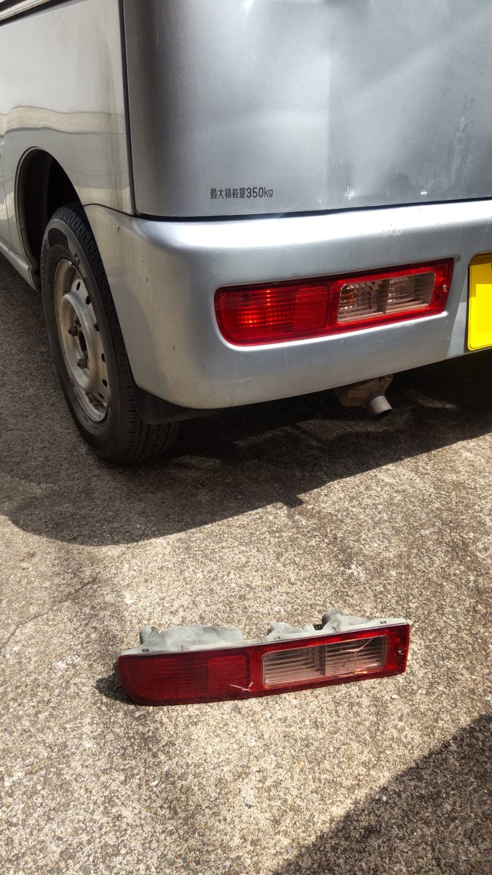 灯火等をまずお調べ致しましたら、テールランプが破損しておりました。