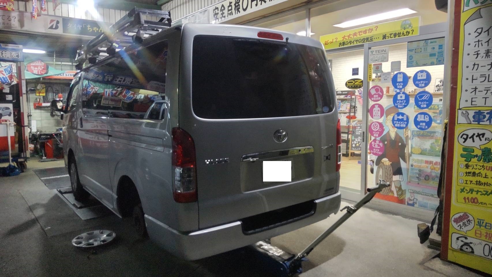 夕方からは、オイル交換でお越しのハイエース空気圧点検中に、えータイヤが、、、、