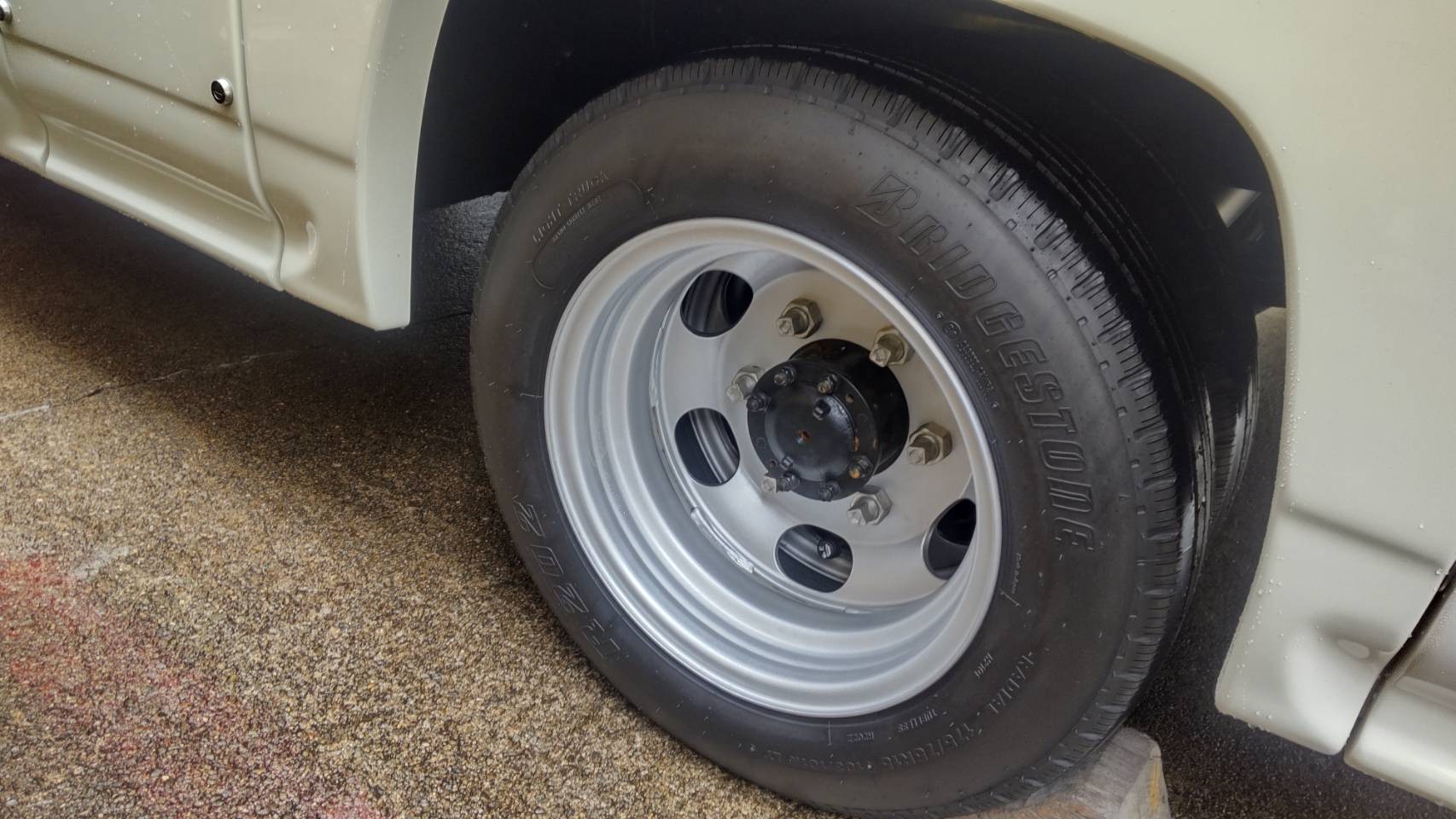 リヤーは、185/75R15に変更です。エアロ形状によっては干渉するキャンピングかーもあるそうです。