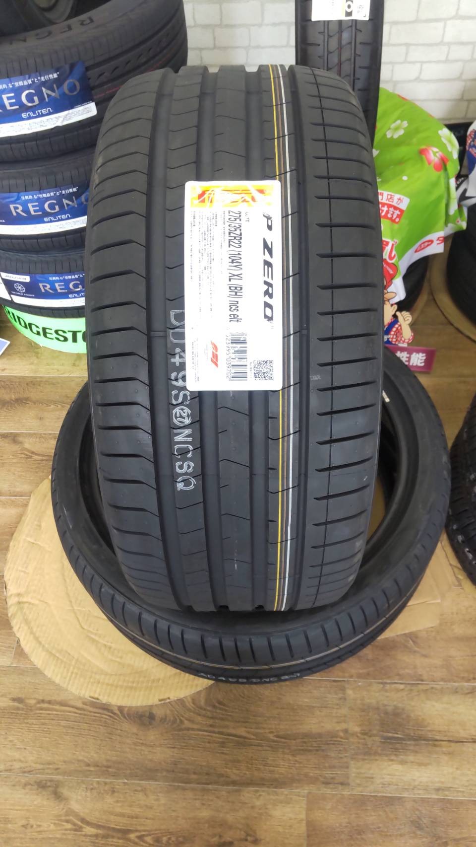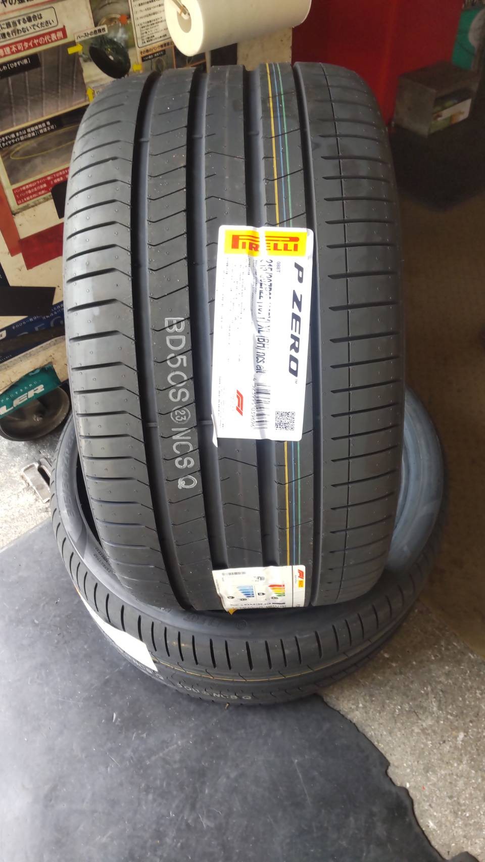 フロントです。ピレリーが認証タイヤ設定です。ブリヂストンの設定は残念ながらございませんでした。