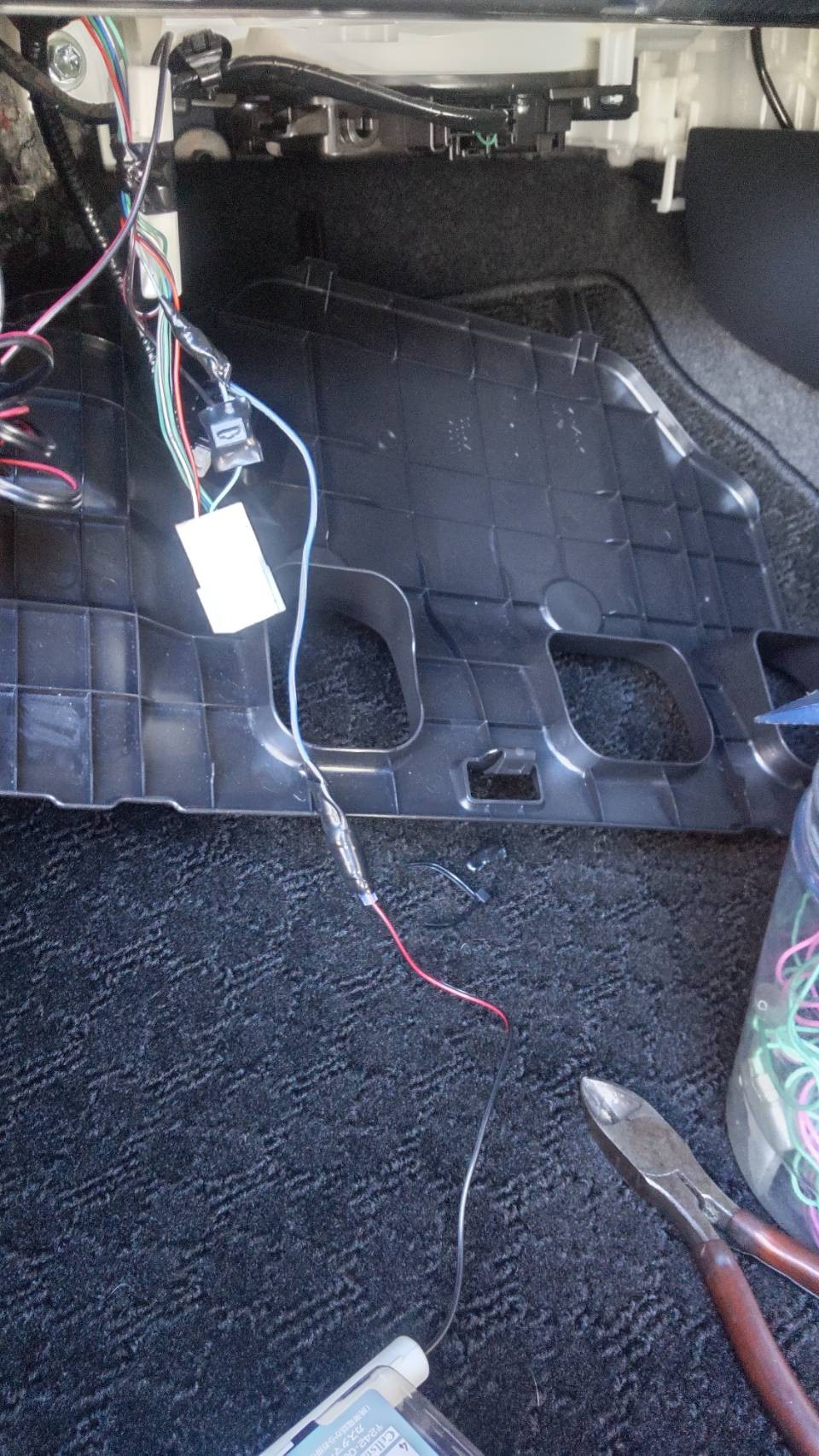 レーダー探知機の電源は助手席グローBOX奥から取り出します。