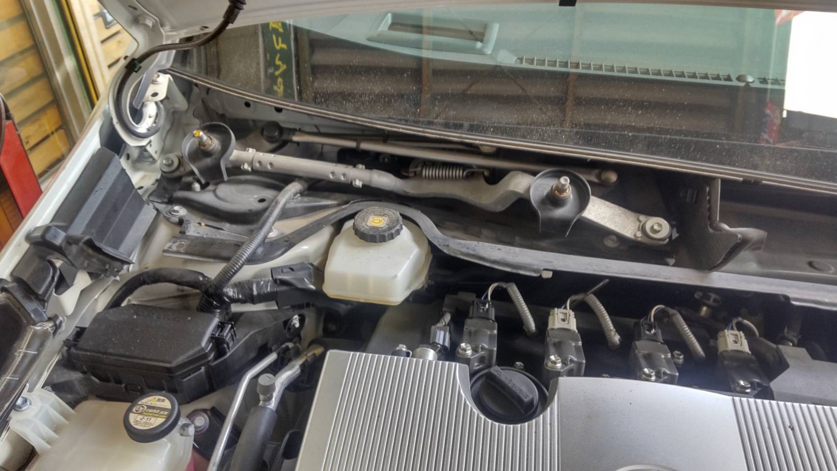 フロントの足回り交換には、ワイパー周りの取り外しが必要となります。これが結構大変で気を付けないと